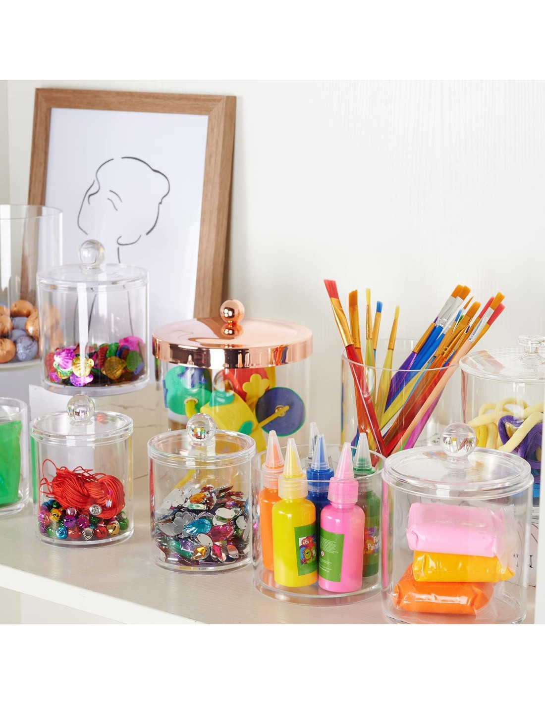 - Hermoso y funcional: El juego de tarros de boticario de 15 oz (425,24 ml) y 12 oz (340,19 ml) combina belleza con organización. Los tarros son perfectos para el organizador de tocador de baño, como qtips, bolas de algodón, discos de algodón, sales de baño, esponjas de maquillaje, gomas elásticas, agujas, etc.