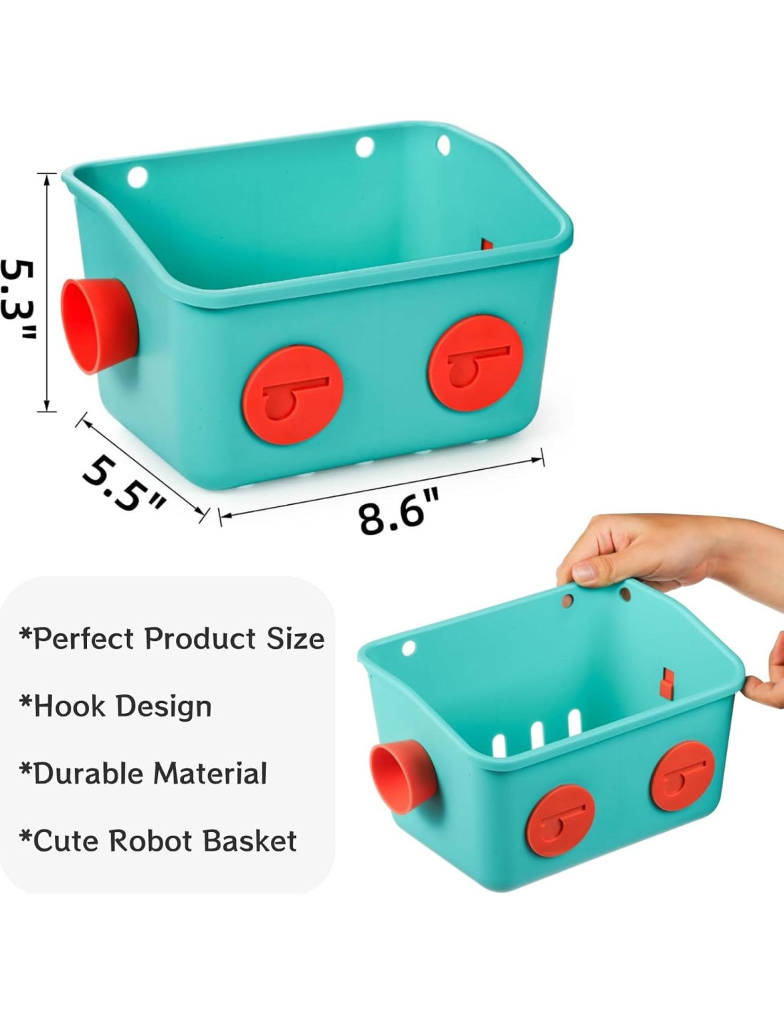 - Diseño Reflexivo: Con colores hermosos y formas de robot interesantes, nuestros caddies de ducha colgantes de plástico montados en la pared son perfectos para que los niños distingan colores y estimulen la imaginación. El orificio de drenaje en la parte inferior mantiene efectivamente los productos de baño y juguetes limpios y secos.