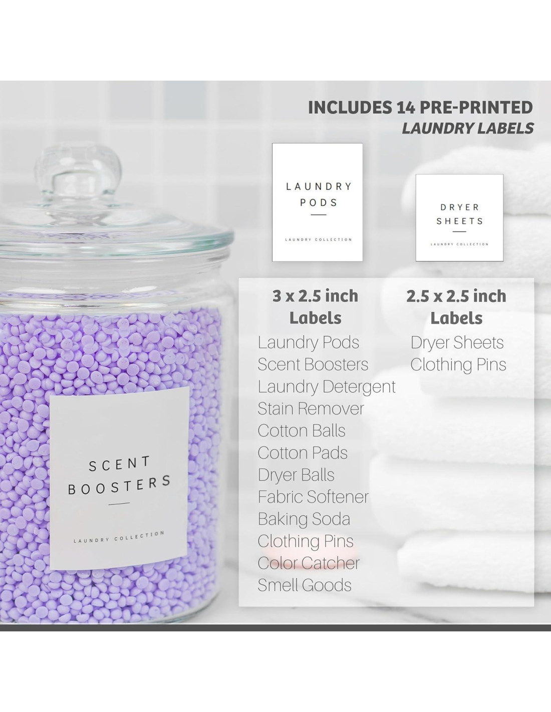 - ETIQUETAS DE LAVANDERÍA MINIMALISTAS IMPERMEABLES INCLUIDAS: Cada conjunto incluye una mezcla de etiquetas autoadhesivas e impermeables en colores negro y blanco para adaptarse a la decoración de diversas lavanderías. Las etiquetas cubren todo, desde cápsulas de lavandería, detergente para lavandería, suavizante de tela, potenciadores de aroma, bolas de secado, perlas de aroma, hojas de secado, pinzas para ropa y otros, y son perfectas para todo tipo de contenedores.