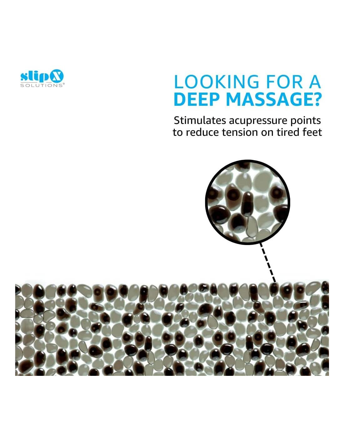 - Beneficios: Caminar sobre piedras es un masaje de tejido profundo perfecto que se conoce por reducir la tensión y bajar la presión arterial al estimular puntos de acupresión en tus pies. Disfruta de un tratamiento similar a un spa desde la comodidad de tu hogar con este tapete de ducha de textura suave.
