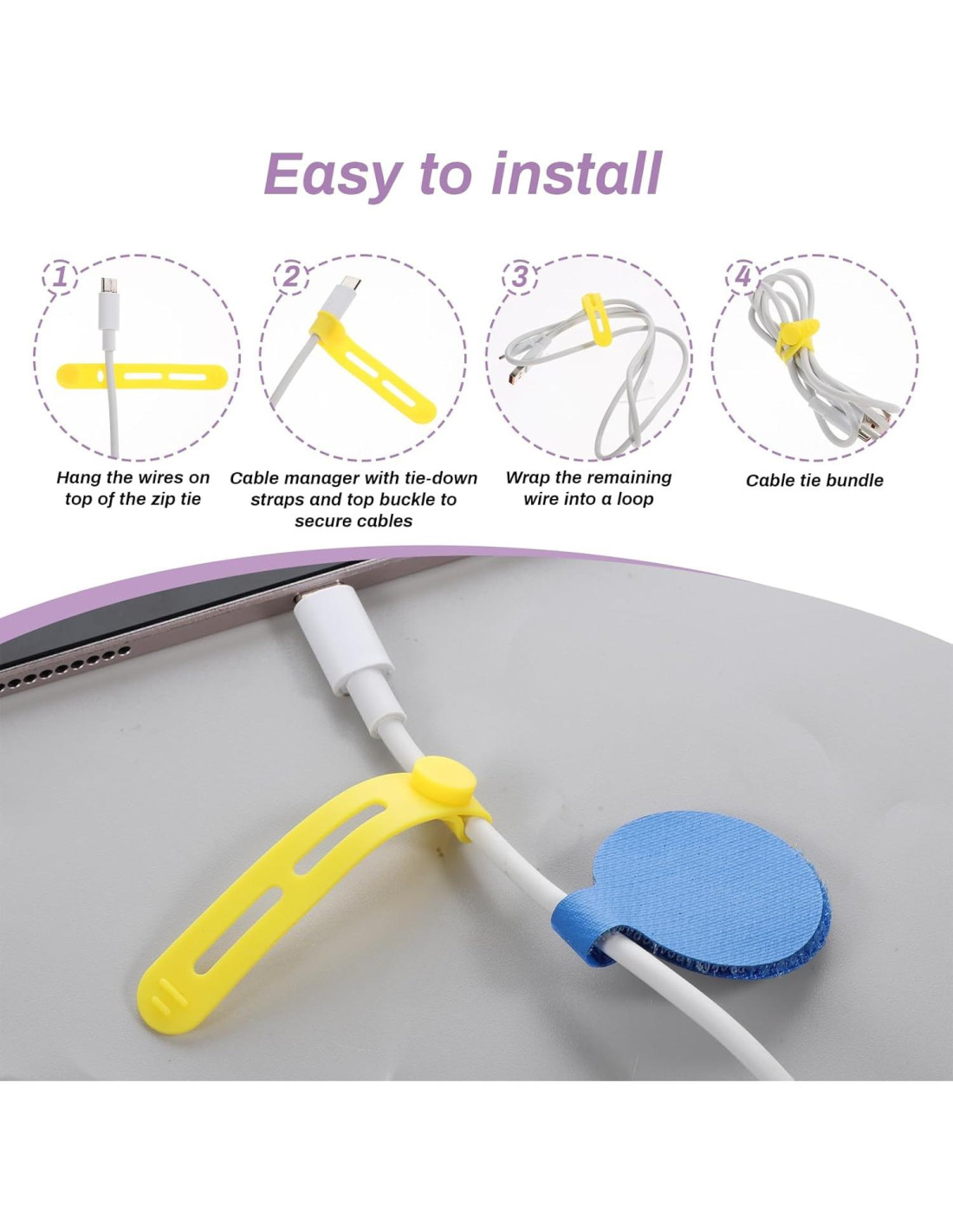 - Materiales de Alta Calidad: Hecho de fibra de poliéster de alta calidad y equipado con cierre, la etiqueta de cable no es fácil de romper y se puede reutilizar. Las bridas de silicona pueden fijar firmemente el cable en el escritorio