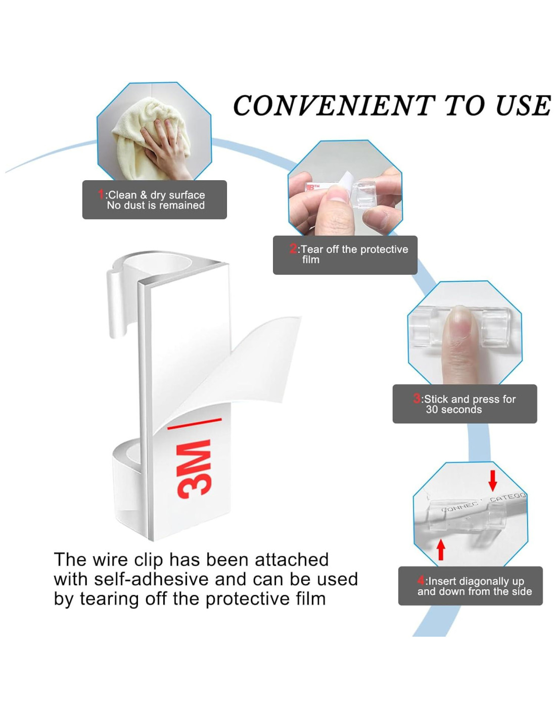 - Instrucciones de uso: Antes de usar el clip de cable, limpia la superficie, mantenla seca, pégalo y presiónalo firmemente durante 30 segundos, y úsalos para una máxima adhesión después de 24 horas.