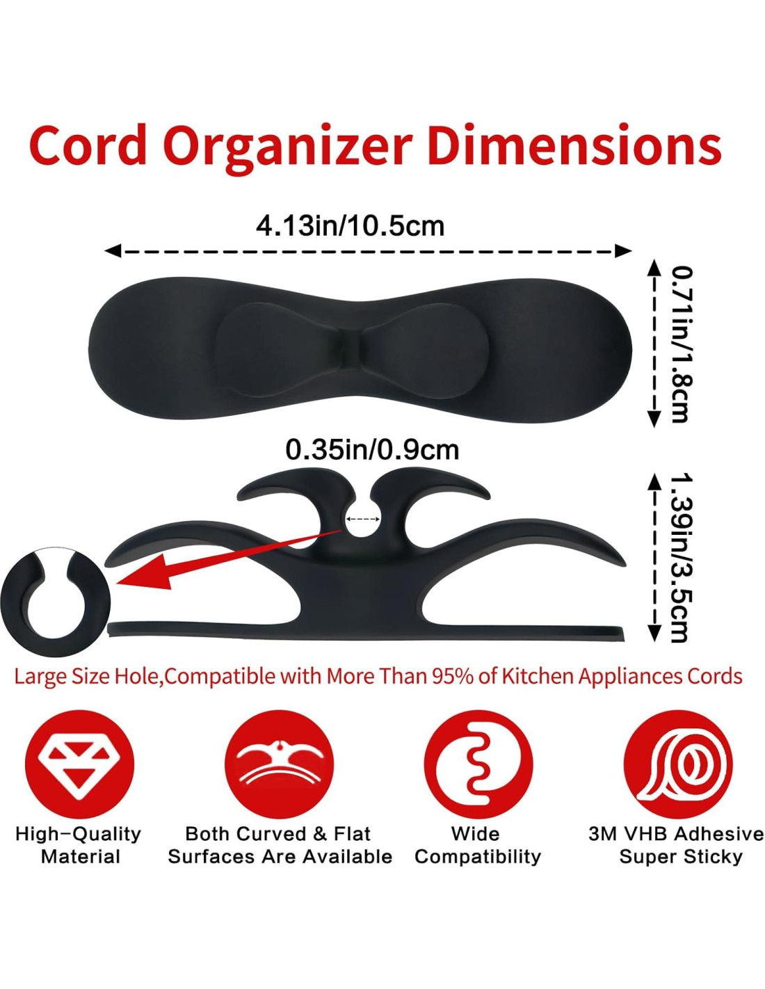 - [Material Premium] - El organizador de cables para electrodomésticos utiliza silicona resistente a altas temperaturas, tiene un fuerte aislamiento eléctrico. Puede proteger los cables de ser dañados. El adhesivo está hecho de 3M VHB súper pegajoso, no es fácil de caer. El empaque se presenta en una delicada caja de color sellada, viene con manual de instrucciones.