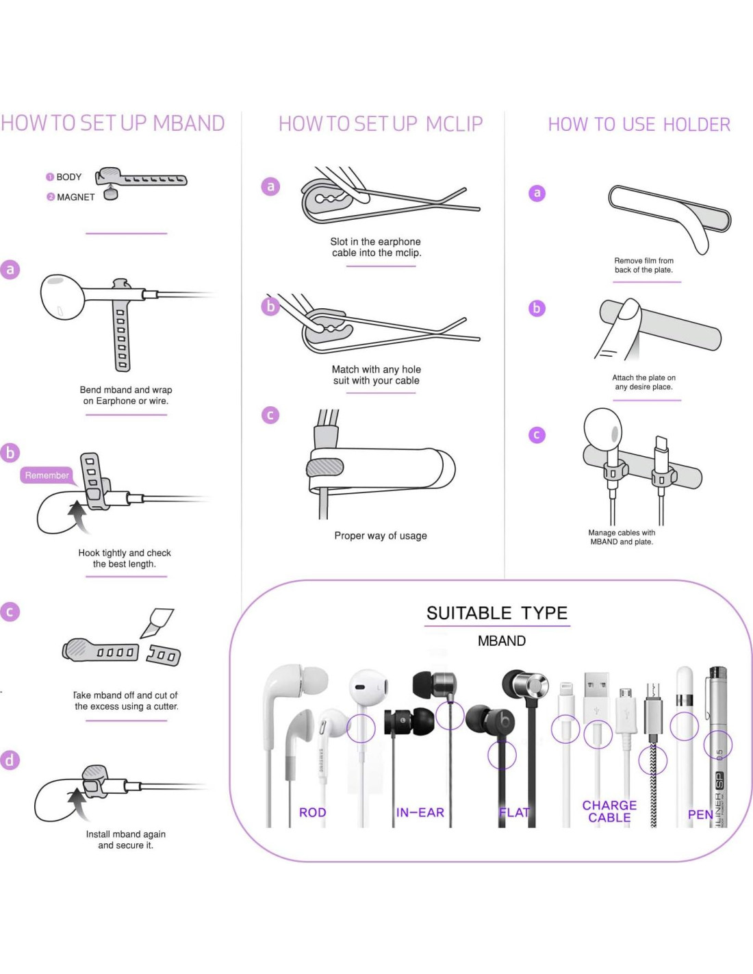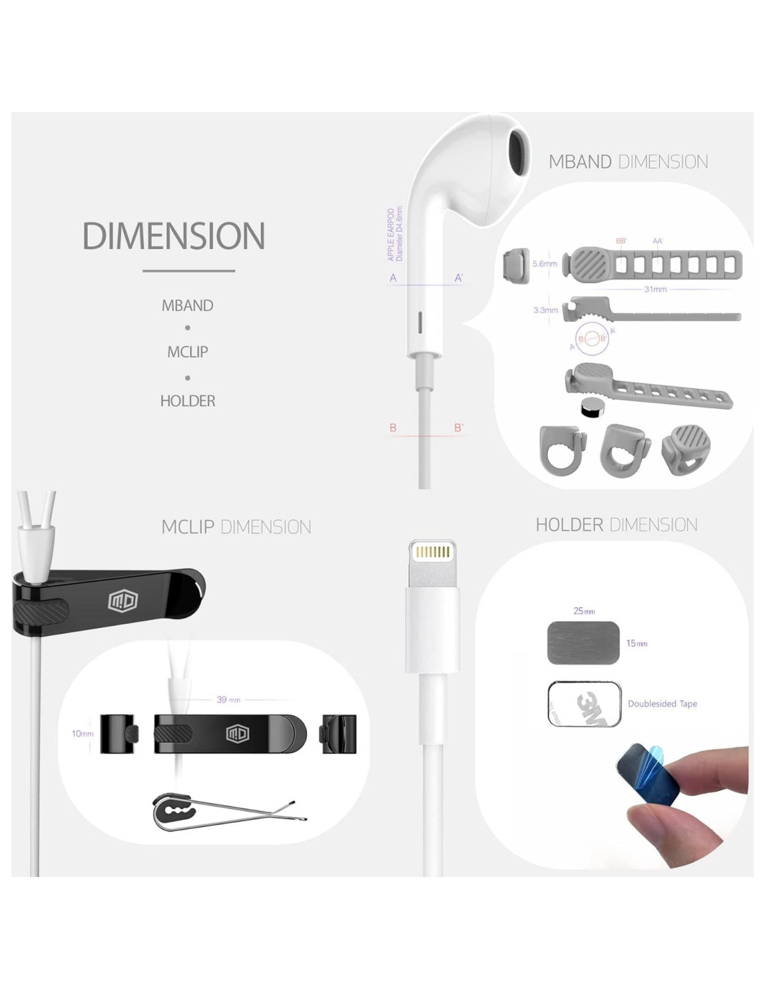 - MATERIAL SEGURO Y ECOLÓGICO - Nuestro paquete todo en uno de Mband2 presenta un accesorio pequeño y ligero para el día a día. Está hecho de silicona suave ecológica que te brinda un recubrimiento repelente al polvo. Es lo suficientemente delgado y pequeño como para llevar en tu bolso o mochila. Además, puedes ajustar su longitud hasta 31 mm adecuada para cualquier tipo de cable, incluidos el cable de auriculares y los cables de suministros del hogar. ¡Ahorra tiempo organizando núcleos desordenados al abrocharlo alrededor!