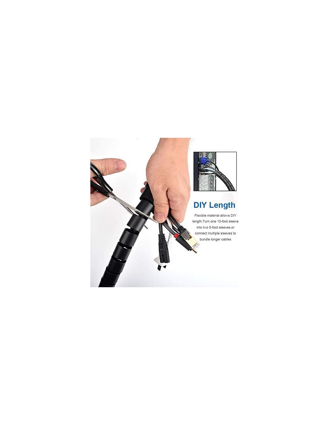 RELIANCER Manga de Gestión de Cables de 10FT, Organizador de Cables Enrollados con 4 Clips de Cable y Clip Guía, Cubierta de Cables, Protector de Cables, Soluciones Ocultadoras de Tubos de Cables Desordenados para TV, PC, Hogar y Oficina