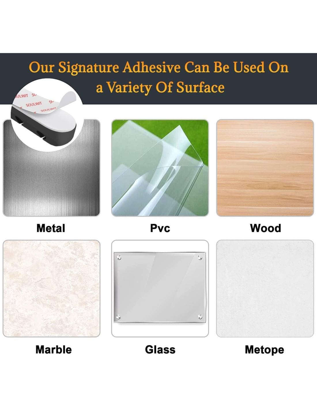 - El adhesivo de doble cara es muy firme y duradero y funciona bien en superficies lisas y limpias, como mármol, plástico, madera, vidrio, metal y goma.