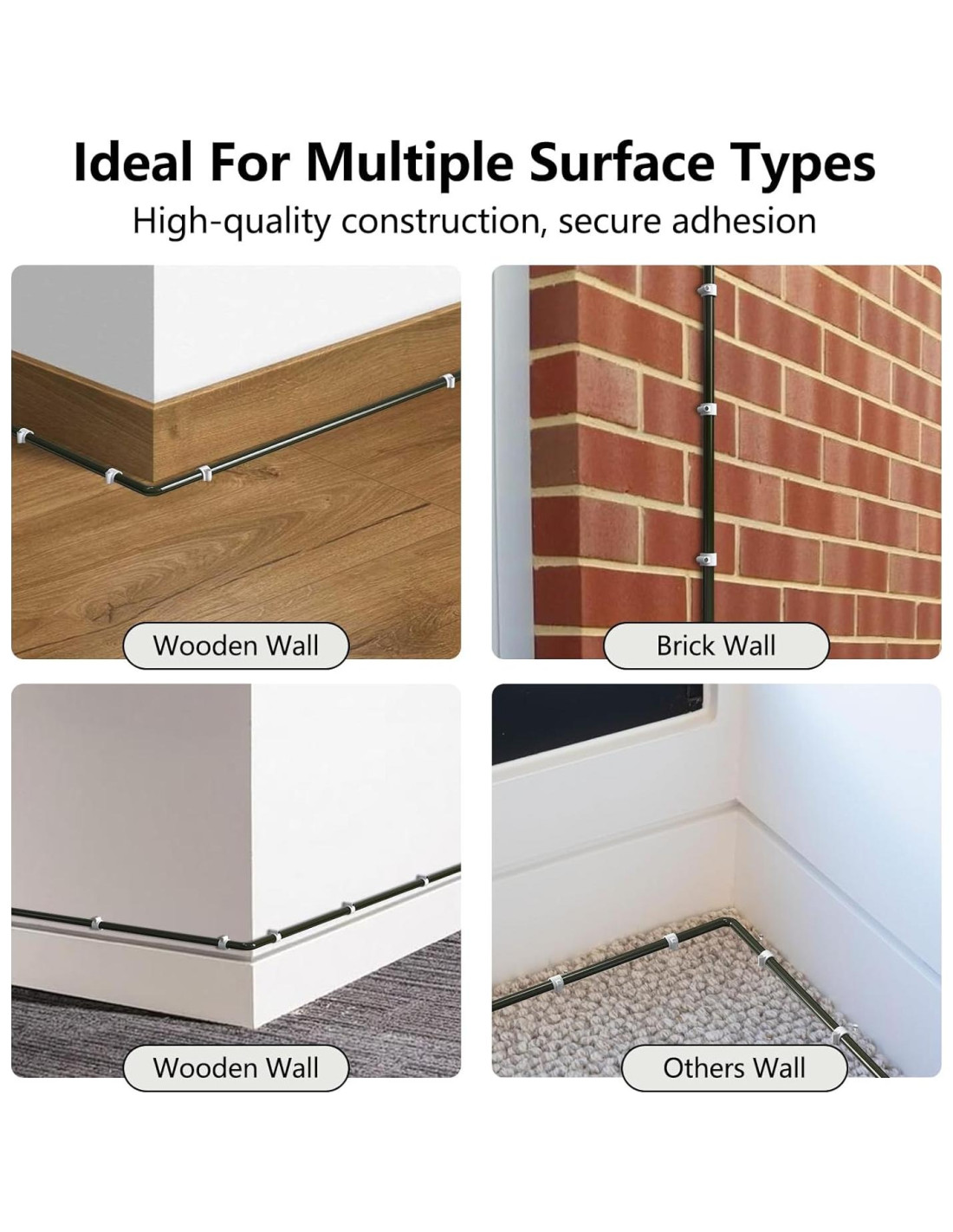 - Gestión de Cables Limpia y Sin Enredos. Enruta y asegura los cables a lo largo de paredes, zócalos o techos para eliminar cables desordenados y reducir riesgos de tropiezos. Mantiene tu espacio ordenado, seguro y organizado.