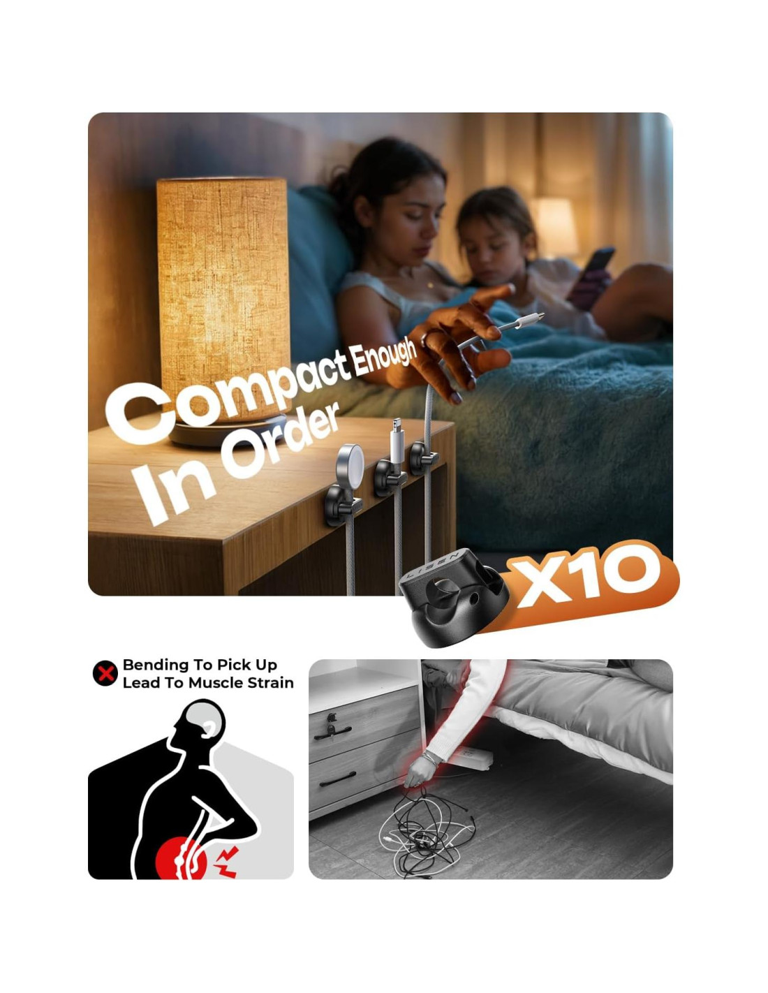 - Clips para Cables para Uso Fácil con una Mano: El sujetador magnético de cables LISEN ofrece un mecanismo único de apertura y cierre magnético, facilitando la colocación o extracción de cables con una sola mano. A diferencia de los sujetadores de cables ordinarios, el eje rotatorio de 60 y el sistema de bloqueo magnético permiten agarrar o añadir un cable rápidamente en segundos, asegurando comodidad y eficiencia