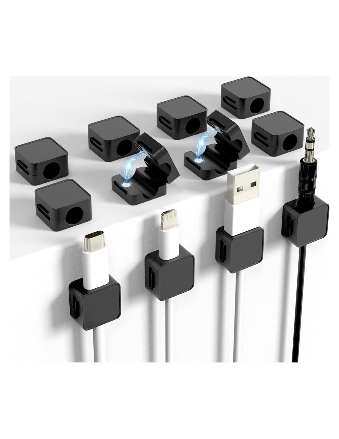 - [Almacenamiento de Cables, Mantenerlo Ordenado] Viene con 12 juegos de clips magnéticos individuales, muchos de ellos, puedes fijar más cables ordenadamente en su lugar, mantenerlos fuera del suelo y fuera de la vista, mantener los cables ocultos fuera de alcance y fuera del camino. Genial para la organización de cables en el hogar, oficina, dormitorio, coche, etc.