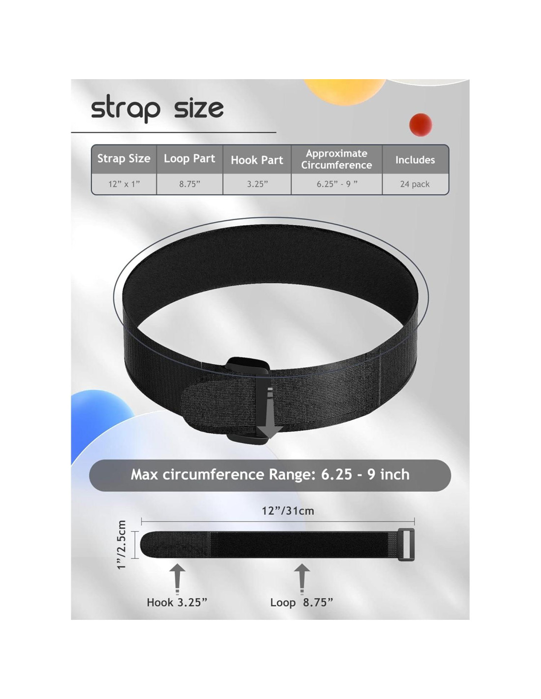 - DEFENITIVAMENTE MUY VALIOSO - Las correas de cable de gancho y bucle están hechas de material de tela con accesorios de gancho y bucle, cada paquete incluye 24 piezas de correas de cable con hebilla. Usa correas de bicicleta para la gestión de cables, una gran alternativa a las correas de plástico y otros sujetadores de un solo uso. Las correas de cordón harán que tu hogar se vea más limpio y ordenado. Te encantará la variedad en este surtido de correas de agrupación reutilizables y de múltiples usos.