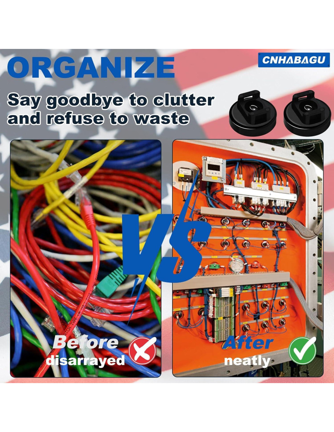- Organización Multifuncional: Los soportes de bridas magnéticas son ideales para uso en interiores y exteriores, en hogares, oficinas, almacenes, talleres, vehículos, barcos, camiones, caravanas, electricidad industrial, maquinaria y equipos, etc., proporcionando una forma conveniente de mantener los cables juntos y prevenir enredos. Son la solución ideal para gestionar cables organizados y mantener un entorno ordenado y libre de desorden