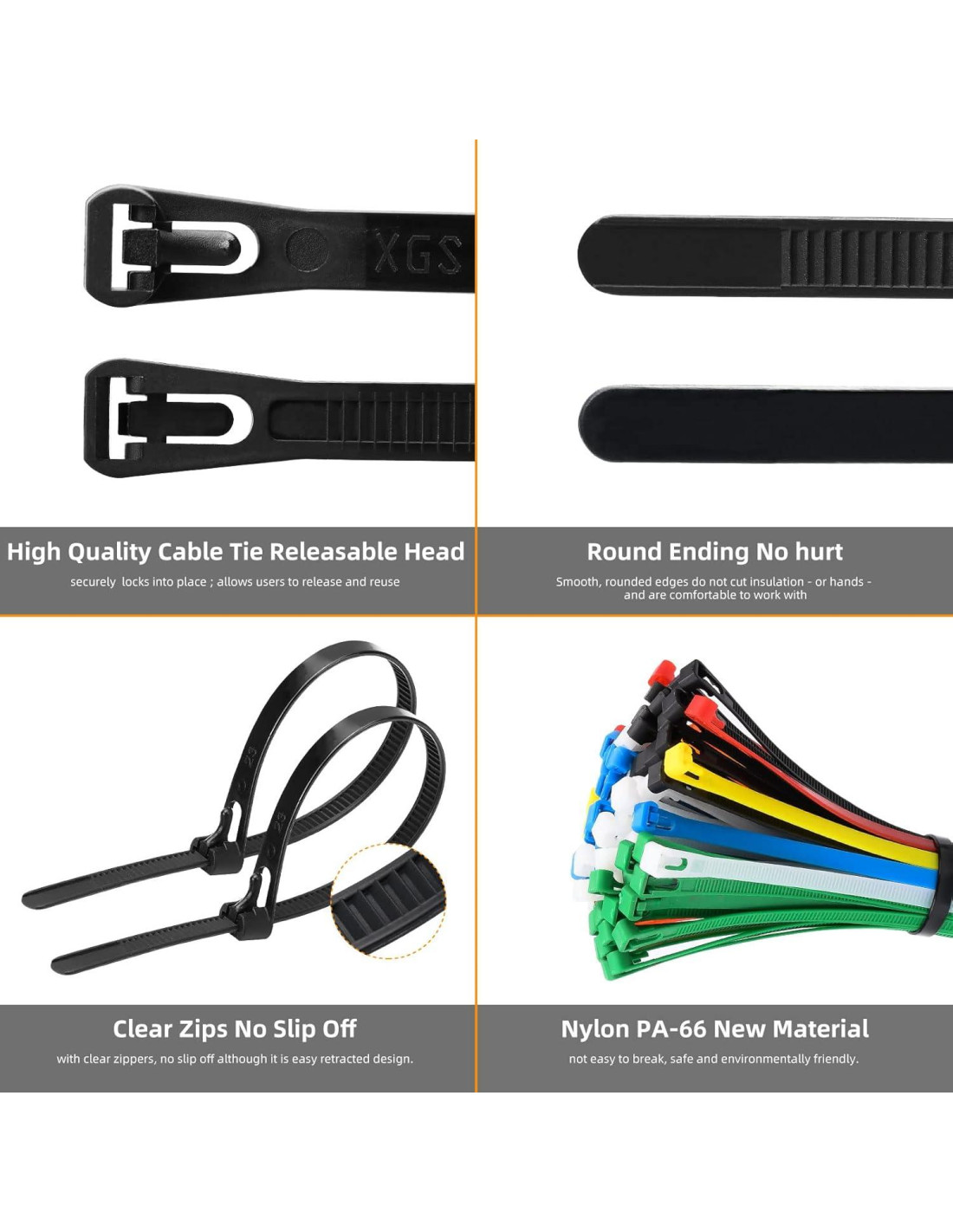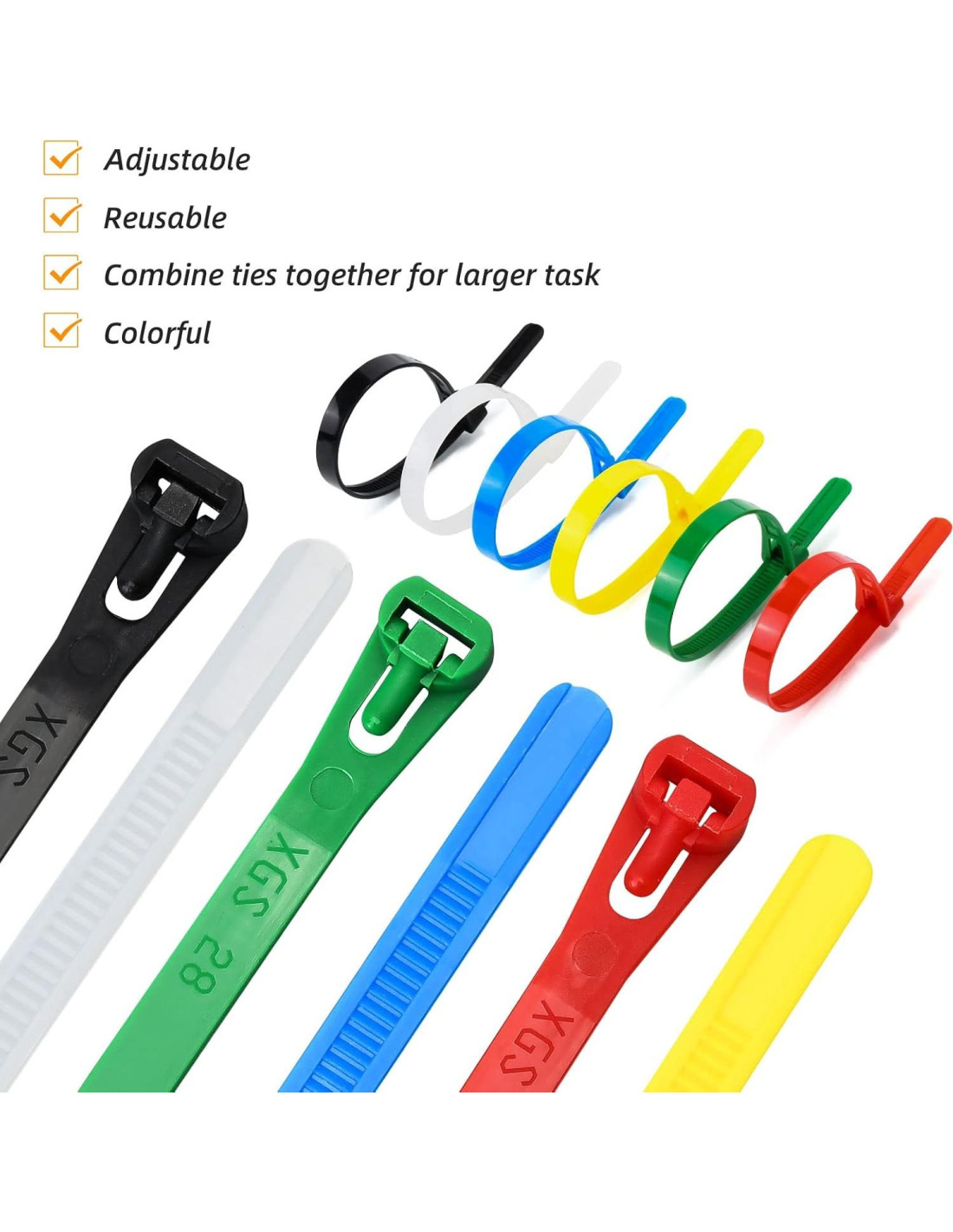 - ORGANIZADOR DE CABLES Y SIN DESLIZAMIENTO: nuestras bridas reutilizables tienen un cierre de auto-bloqueo que se puede bloquear fácilmente en su lugar. Con dientes profundos y claros, no se deslizan aunque tienen un diseño fácil de retraer.