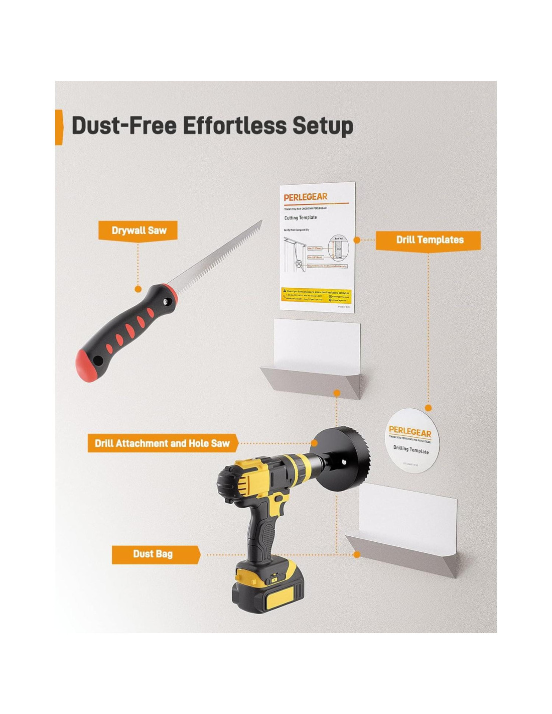 - Instalación Rápida y Sin Desorden: El kit de gestión de cables detrás de la pared incluye todo lo que necesitas para instalarlo rápida y ordenadamente - un accesorio de perforación de sierra de agujero, sierra de yeso y plantillas de corte para precisión. Con instrucciones paso a paso, puedes instalarlo fácilmente en menos de 30 minutos. Por favor, verifica que tu pared tenga al menos 7.62 cm de profundidad. Asegúrate de que pueda acomodar el tamaño de nuestros productos antes de instalarlo.