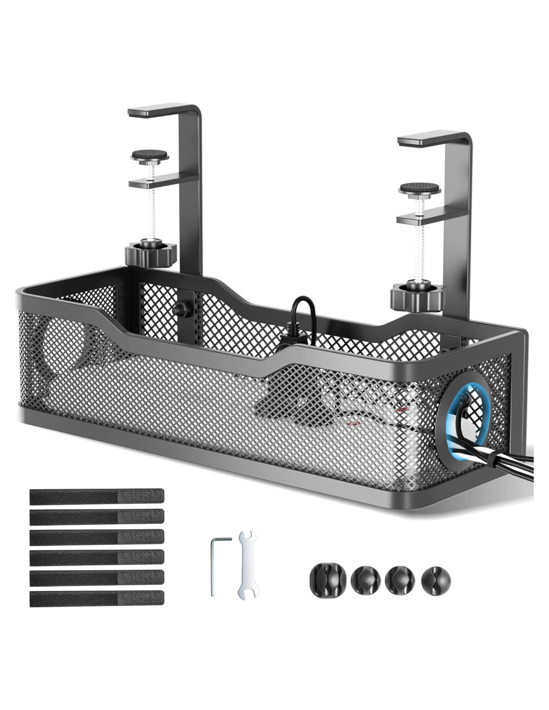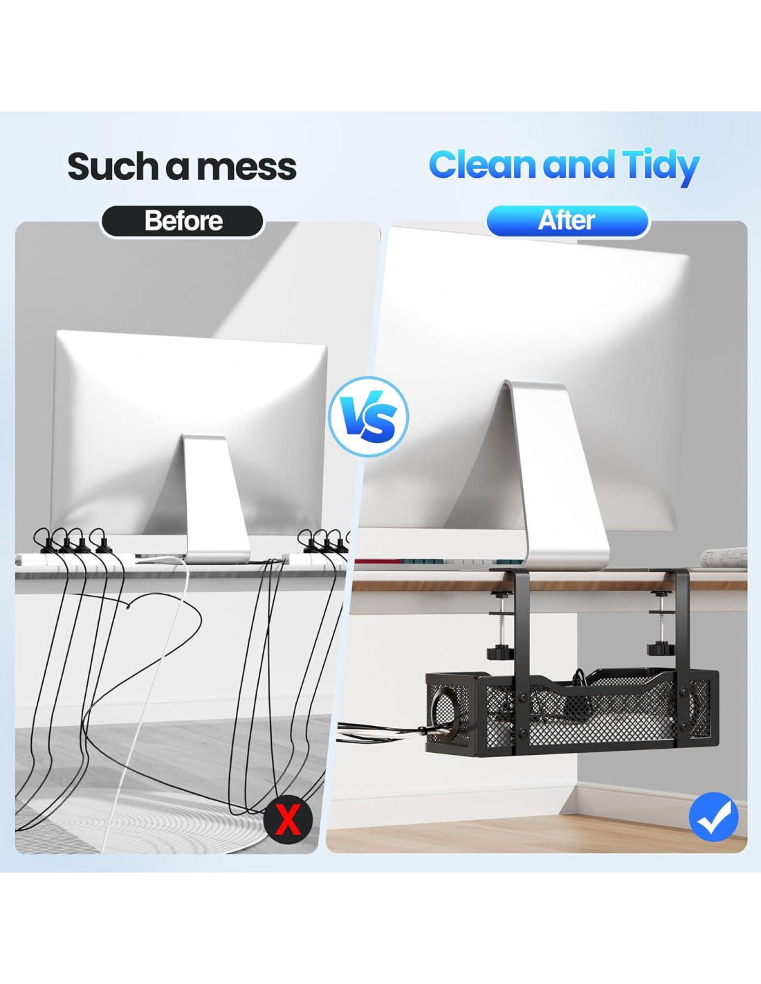 Bandeja de gestión de cables bajo el escritorio: Organizador de cables ideal para tu escritorio. Los clips ajustables de 0.4" (1 cm) a 2.4" (6 cm) son compatibles con diferentes grosores y tamaños de escritorio. Ideal para escritorios de 0.4" (1 cm) a 2.4" (6 cm) de grosor. No te preocupes, ¡nuestros clips de gestión de cables bajo el escritorio están equipados con almohadillas antiarañazos, evitando efectivamente que dañen la superficie de la mesa en comparación con otras cajas de almacenamiento de cables! Nuestra gestión de cables es adecuada para diversas configuraciones, incluyendo oficinas, hogares, escuelas y otros lugares donde se necesita organización de cables o artículos diversos. Hecho de metal resistente, esta gestión de cables completamente soldada y recubierta en polvo no es fácil de oxidar ni acumular polvo. Soporta hasta 10 lbs (4.5 kg) y 13.4L x 4.6W x 3.1H (34.0 cm x 11.7 cm x 7.9 cm) cada uno. ¡Es tu organizador de cables ideal!