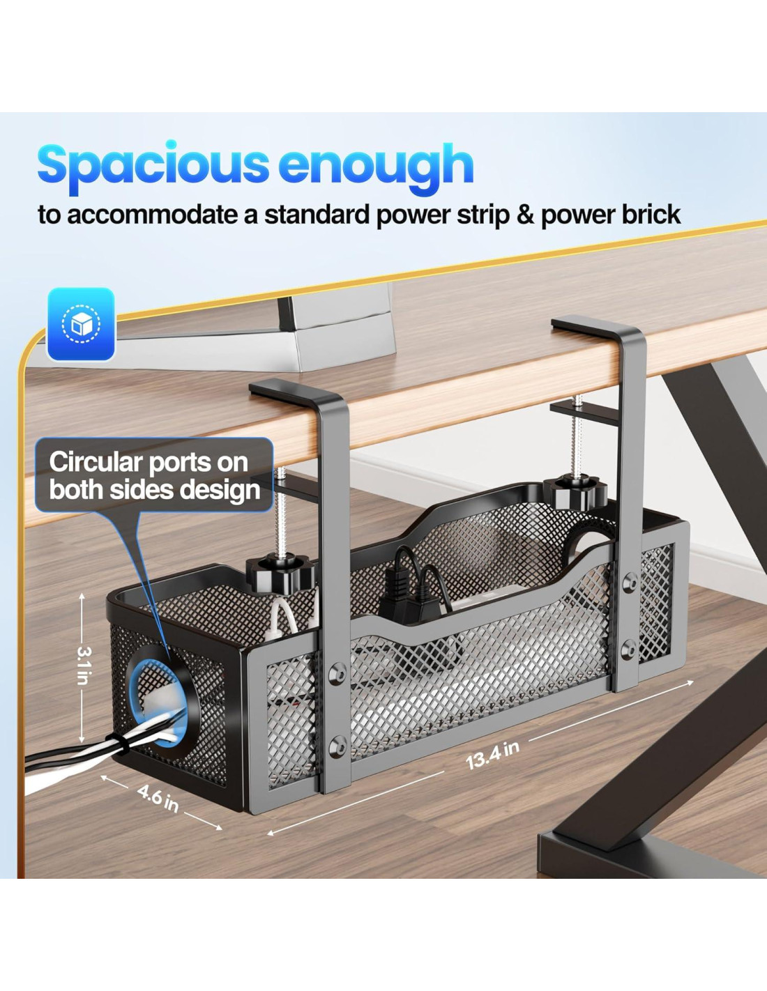 - Hecho de metal resistente, esta caja de cables completamente soldada y recubierta en polvo no es fácil de oxidar ni acumular polvo. No te preocupes por poner esta gestión de cables de computadora bajo tu escritorio durante mucho tiempo. Soporta hasta 10 lbs (4.5 kg) y 13.4L x 4.6W x 3.1H (34.0 cm x 11.7 cm x 7.9 cm) cada uno. Organizador de cables ideal para tu escritorio de 0.4" (1 cm) a 2.4" (6 cm) de grosor.