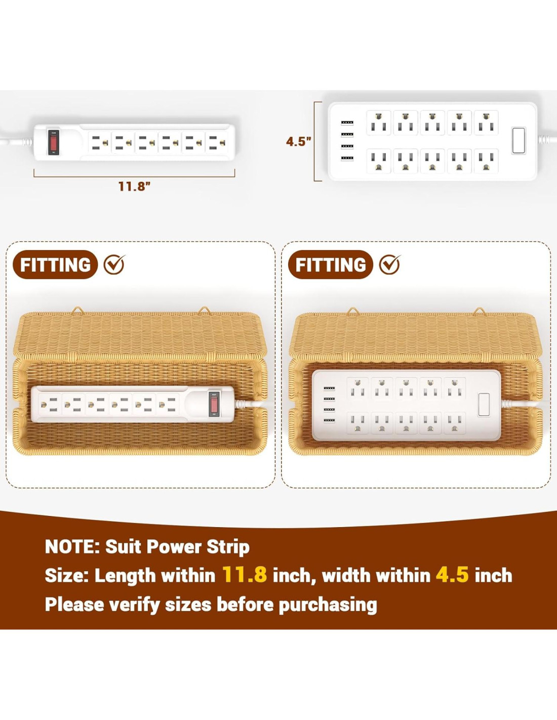 - Caja de Artesanía de Ratán Imitación Tejida a Mano: Organizador de cables de ratán imitación tejido a mano, transpirable y dúctil, el uso del proceso puede ser muy bueno para la disipación del calor, toda la caja organizadora de cables está diseñada para volver a la naturaleza, sirviendo tanto como una caja de gestión de cables como para decorar su escritorio.