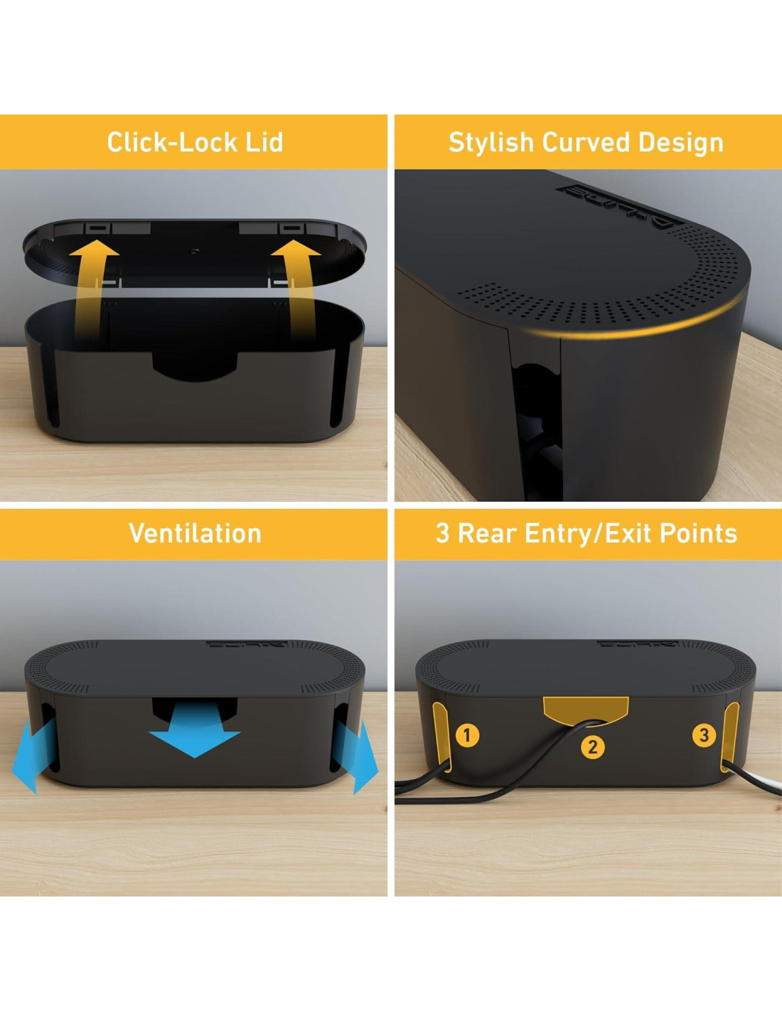 La Unidad de Organización de Cables D-Line proporciona una solución popular para contener bloques de extensión y organizar cables. El diseño tecnológico inteligente de las Cajas de Cables D-Line se mezcla con los entornos modernos. 3 ranuras de entrada/salida de cables en la parte trasera permiten que los cables se dirijan hacia el lado izquierdo, el lado derecho o verticalmente. Todos los organizadores de cables D-Line han sido completamente probados en cuanto a seguridad. La gama de Cajas de Organización/Almacenamiento de Cables de D-Line está producida a partir de un material ABS robusto y seguro eléctricamente con una tapa de cierre efectivo. Las Cajas de Gestión de Cables D-Line pueden ordenar cables antiestéticos alrededor del hogar y contribuir a un enfoque proactivo hacia la Salud y Seguridad en las oficinas.