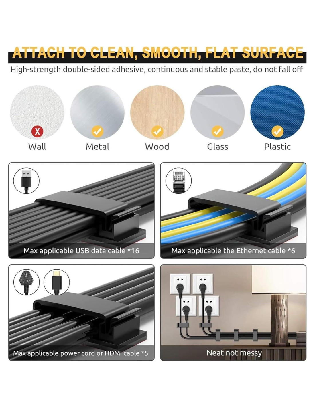- FÁCIL DE INSTALAR Y USAR: Simplemente despega y pega, los clips de gestión de cables autoadhesivos se adhieren firmemente a una superficie lisa y ayudan a mantener tu lugar ordenado y organizado, libre de la molestia de los cables desordenados, un ambiente limpio y ordenado. Adhesivo máximo después de 24 horas. Aplicar típicamente a 50-60 F (10-26 C). [ADVERTENCIA: Temperaturas más bajas afectarán el adhesivo].