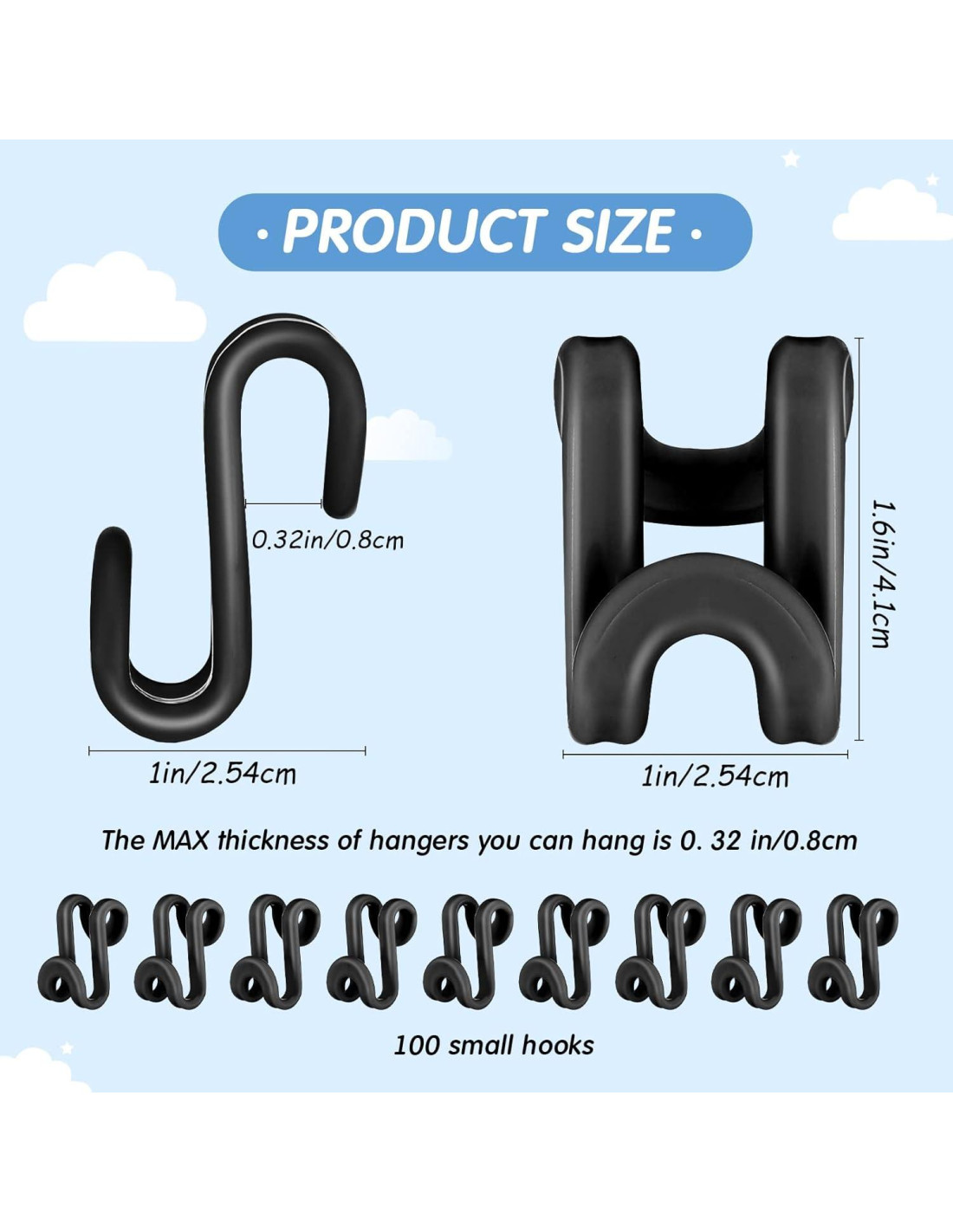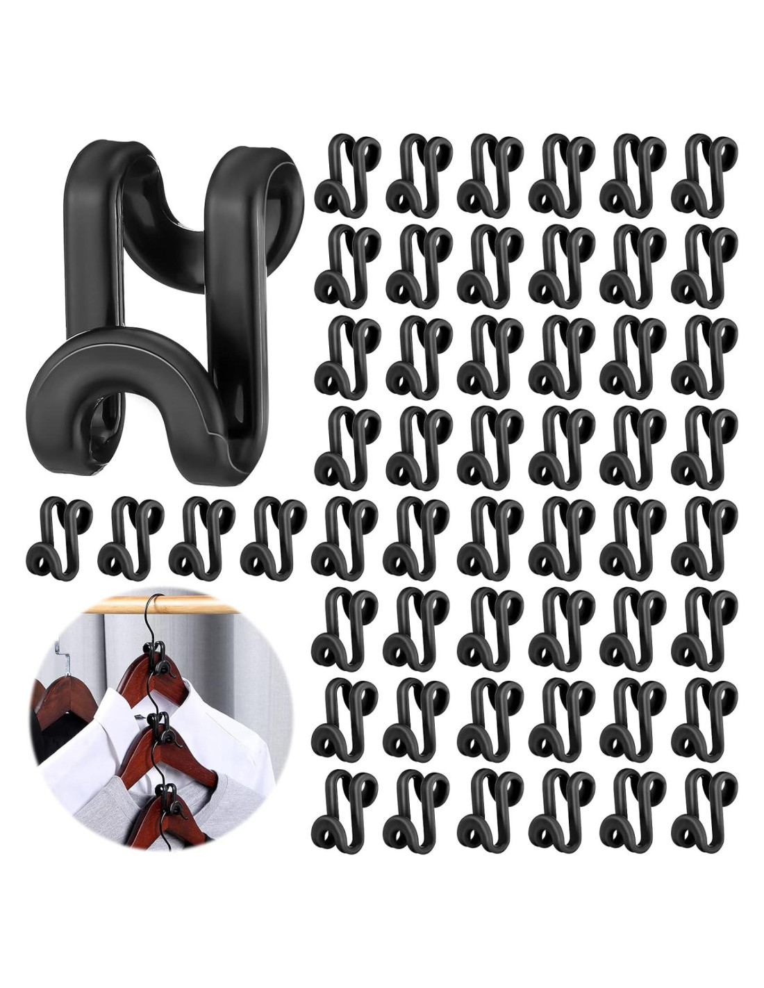 - Gran Cantidad: recibirás 100 piezas de ganchos conectores para perchas, que se pueden aplicar para colgar en la percha y conectar a la siguiente percha, organizando la ropa y puedes colgar pantalones, chaquetas, camisas y faldas en ellos, brindando más conveniencia a tu vida