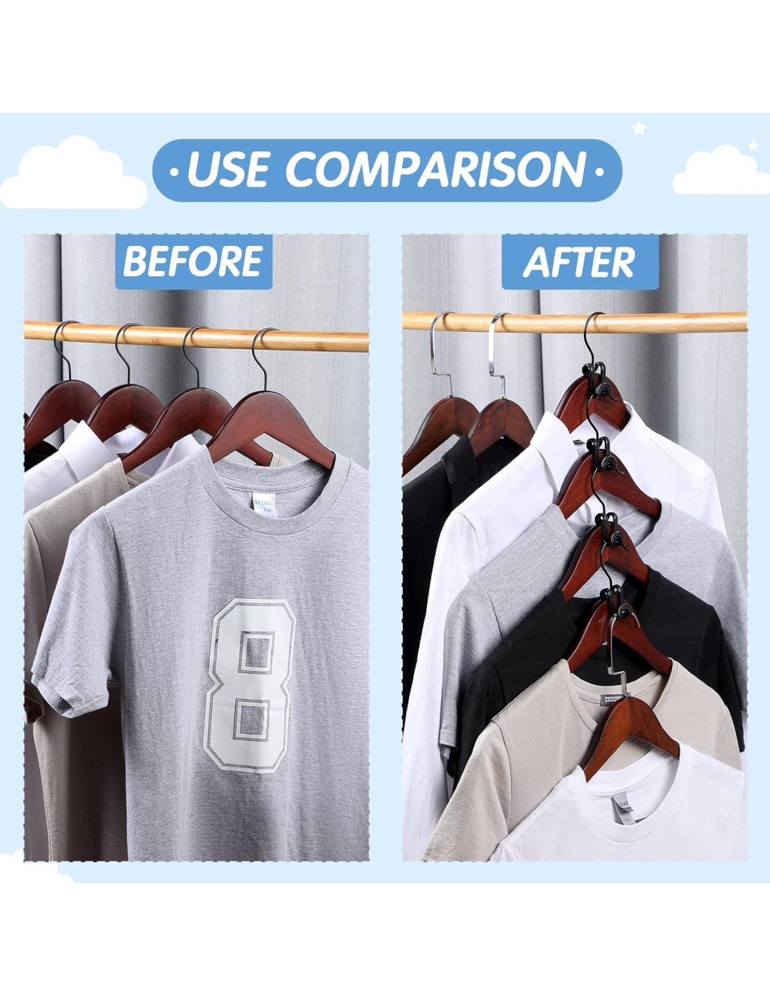 - Estables y Confiables: estos ganchos extensores para perchas para organizadores y almacenamiento vienen con una fuerte función de carga, que puede mantener un buen equilibrio, sostener tu ropa firmemente, prácticos y útiles para usar en tu vida diaria
