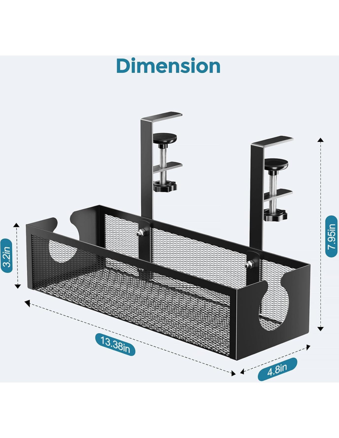 - Tamaño compacto, gran capacidad Dimensiones de nuestra bandeja de gestión de cables: 13.38 pulgadas (33.99 cm) de largo * 4.8 pulgadas (12.19 cm) de ancho * 3.2 pulgadas (8.13 cm) de alto, compacta pero lo suficientemente espaciosa como para sostener múltiples accesorios de energía y desordenar tu espacio de trabajo de manera eficiente.