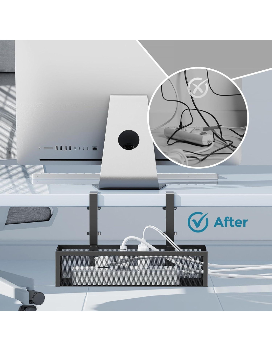 Esta bandeja de gestión de cables para debajo del escritorio cuenta con una instalación sin perforaciones que se ajusta de manera segura a una variedad de grosores de escritorio sin causar daños. La bandeja de cables es perfecta para organizar regletas, cables y adaptadores, la gestión de cables mantiene tu espacio de trabajo ordenado y limpio. La abrazadera de doble dirección y el diseño de lado abierto permiten una configuración flexible y un fácil acceso a los enchufes. Mantente organizado y aumenta la productividad con un escritorio más limpio y eficiente. A diferencia de otros organizadores de almacenamiento de cables, nuestro organizador de almacenamiento para escritorio cuenta con lados abiertos que evitan que los enchufes de la regleta se queden atascados, asegurando una instalación y uso más suaves. Ya sea una regleta o cables, se pueden colocar fácilmente sin bloquear los enchufes, haciendo que tu configuración sea más conveniente y mejorando la organización general del escritorio. Di adiós a herramientas complicadas y daños en el escritorio. Esta bandeja de gestión de cables para debajo del escritorio cuenta con un diseño de abrazadera rotativa que se instala de manera segura sin perforaciones ni tornillos. Simplemente gira para ajustar y apretar, es así de fácil. La instalación no invasiva protege la superficie de tu escritorio y es perfecta para oficinas en casa, espacios de trabajo y más. Rápido de instalar, conveniente de usar. Este almacenamiento para debajo del escritorio es perfecto para oficinas, salas de juegos o cualquier espacio que requiera gestionar numerosos cables, regletas o pequeños artículos. El diseño minimalista en negro y blanco de la bandeja de gestión de cables para debajo del escritorio se integra fácilmente en cualquier entorno mientras añade un toque de estilo moderno y elegancia. Ya sea para trabajar, jugar o uso doméstico, el almacenamiento de cables aporta tanto organización como estilo a tu espacio.