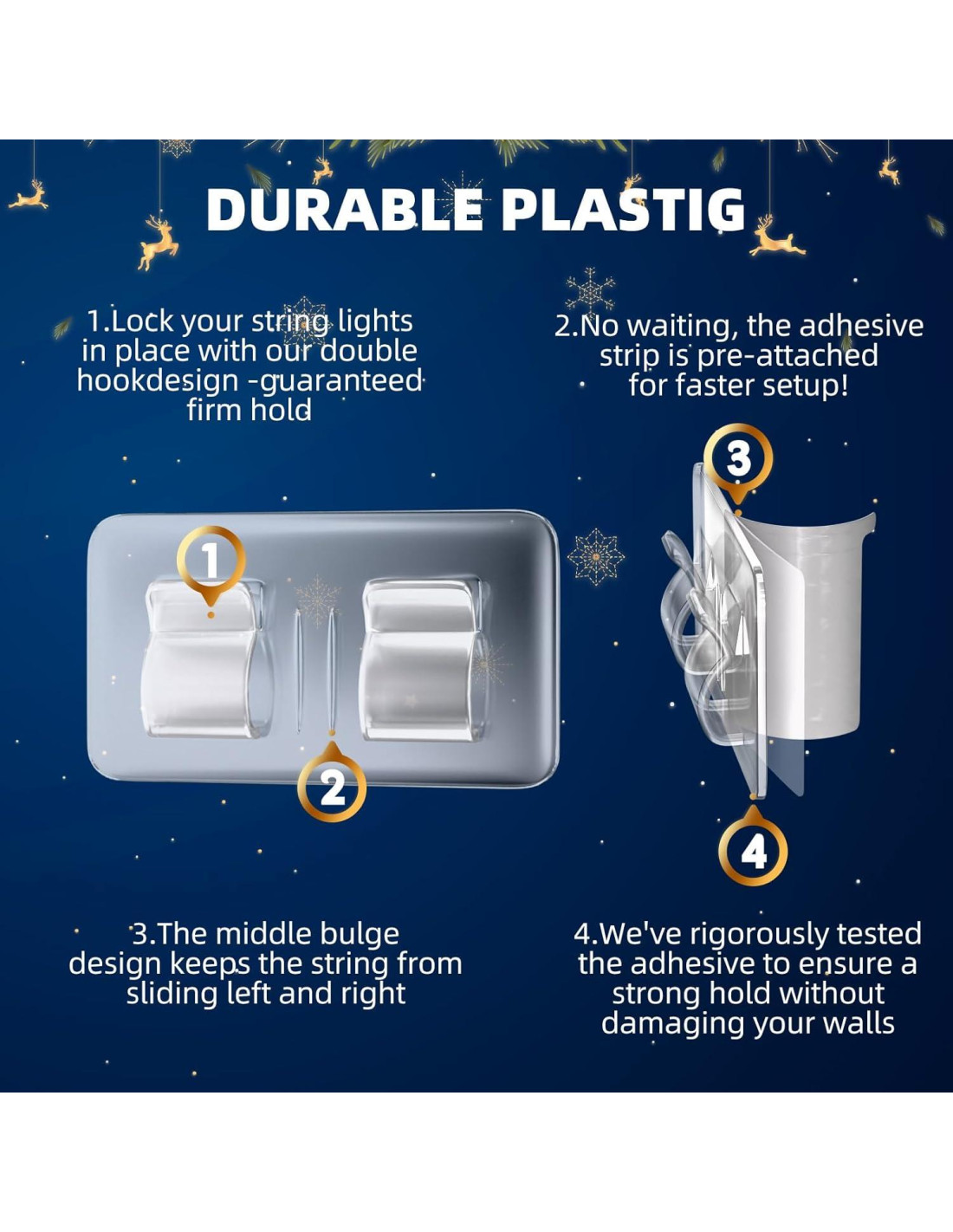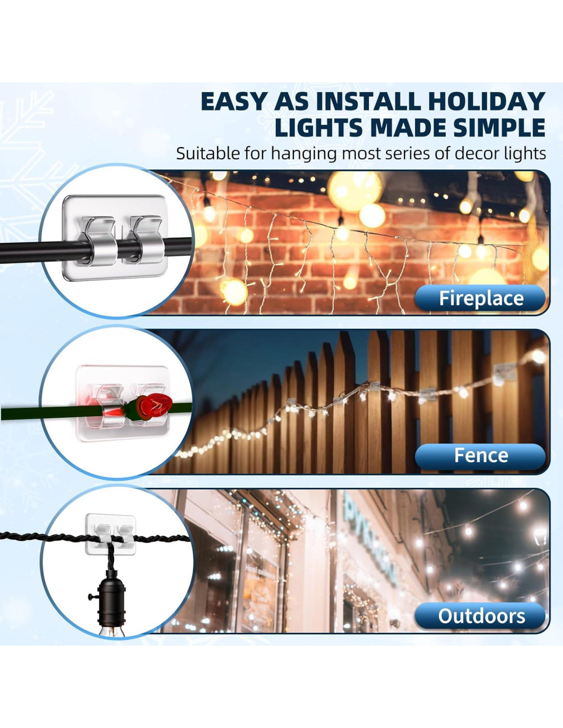 - Clips de Cable Adhesivos para Exteriores Amigables con el Usuario: integración de flexibilidad y robustez, sin bordes afilados en esta superficie suave y bordes de los ganchos de luces de cuerda, seguros para tus manos, no se necesitan herramientas de instalación