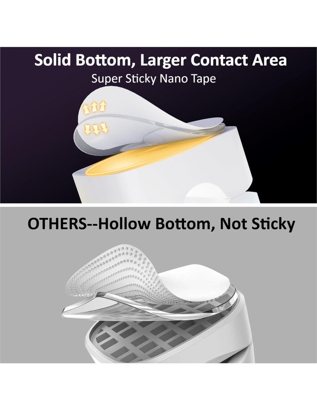 - 4. No se desliza como otros: La base sólida y gruesa mantiene el adhesivo firmemente en su lugar. ¡Di adiós a los clips de cables que se caen de tu escritorio!