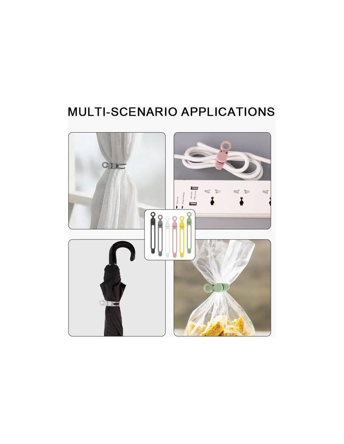 - [Amplia Gama de Usos] No solo para cables, estas bridas también se pueden usar para sellar bolsas de bocadillos, asegurar bolígrafos, mantener paraguas en su lugar o fijar perchas para evitar que se vuelen. Estas bridas de silicona ofrecen funcionalidad organizativa inteligente y flexible, adecuada para diversas ocasiones.