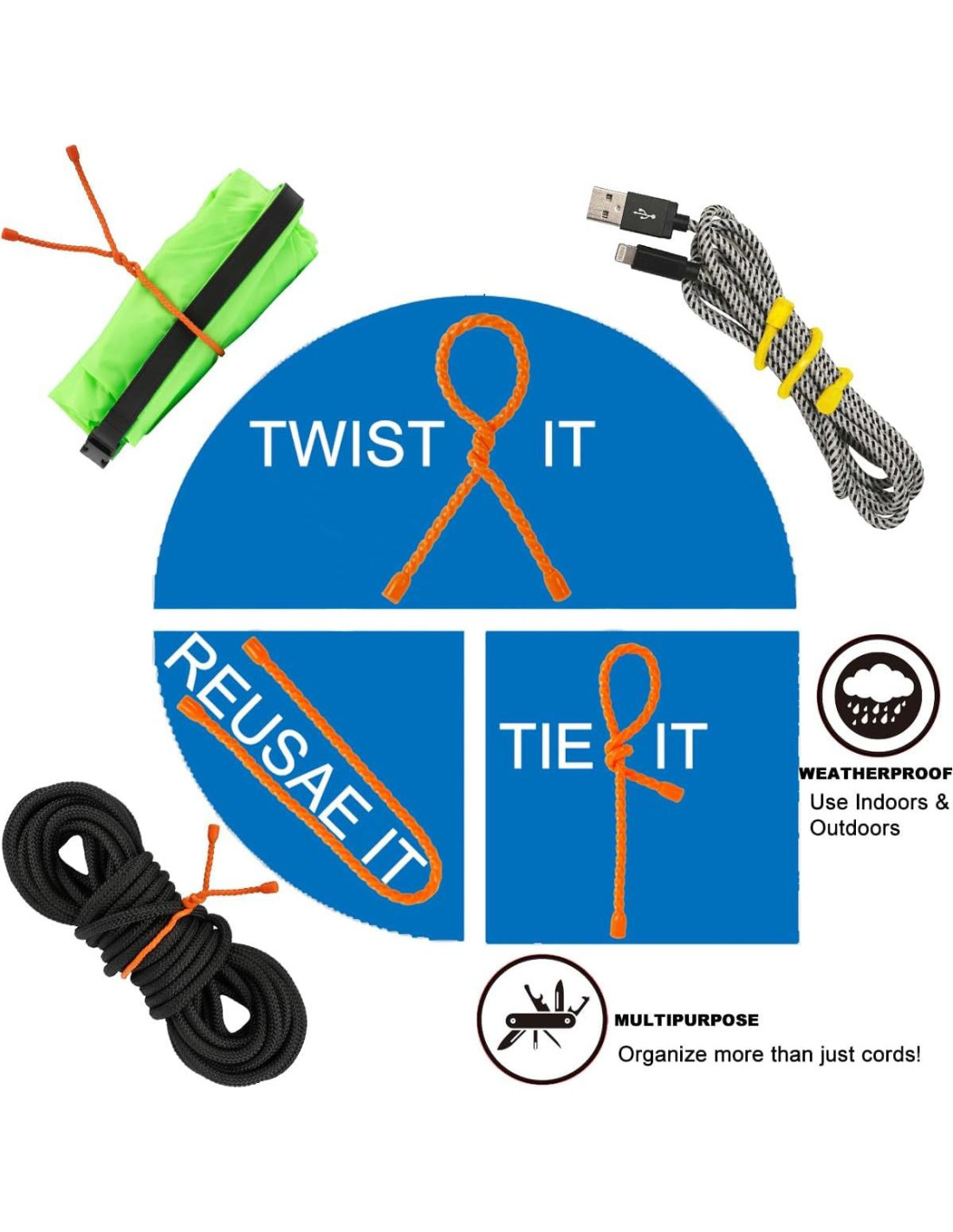 - Los Ties Reutilizables utilizan un núcleo de alambre dual, recubierto en silicona flexible. Envuelve alambres, cables, cuerdas, equipo de camping, herramientas, organización automotriz, agrupamiento, sujeción y muchas más aplicaciones.