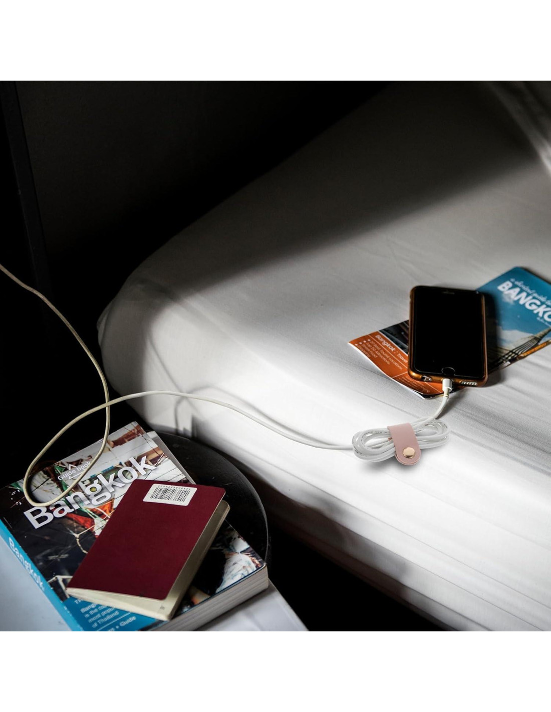 - Pequeño Organizador de Cables: Di adiós a tu escritorio desordenado y enredado. El pequeño organizador de cuero te permite encontrar rápidamente los cables o auriculares que necesitas.