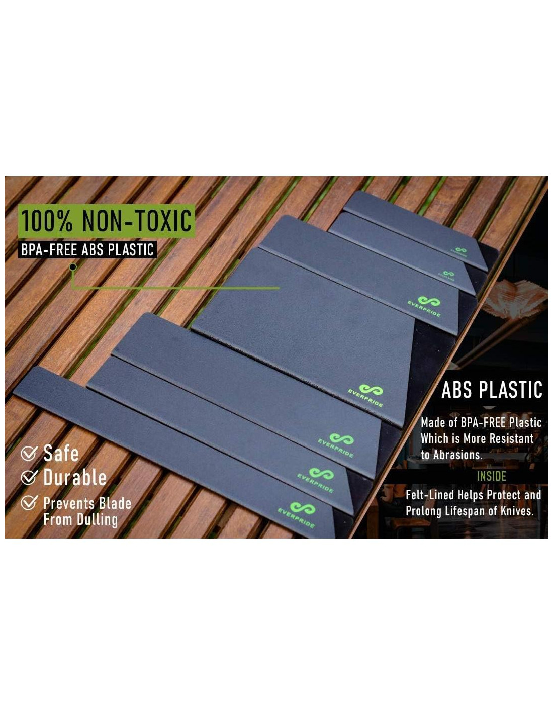 - PLÁSTICO ABS DURADERO Y SIN BPA - Nuestros protectores de cuchillos de alta resistencia están hechos de plástico ABS grueso y sin BPA, que es más resistente a la abrasión y ayuda a proteger sus cuchillos culinarios mientras ofrece el soporte sostenible y la fiabilidad que necesita para un uso a largo plazo.