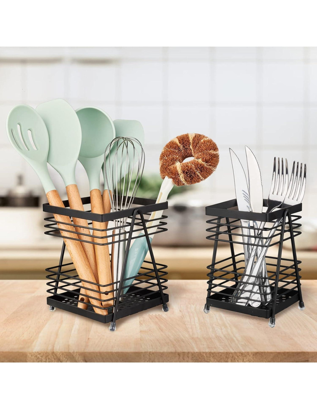 - Diseño de Agujeros de Drenaje para Secado Rápido: El marco abierto de este caddy de utensilios, y es fácil de limpiar y secar; Junto con el fondo hundido permite que el agua pase suavemente para un secado rápido.