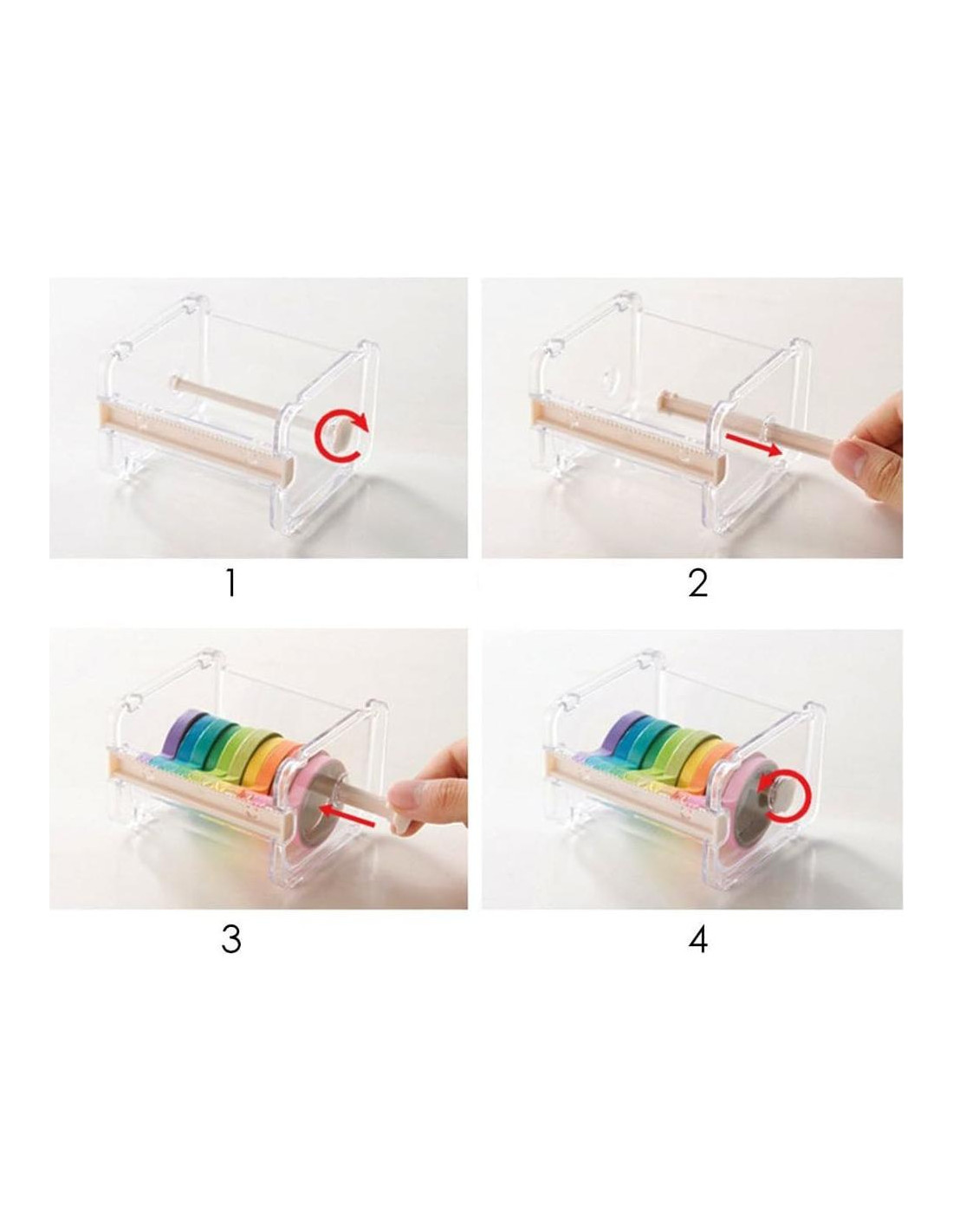 - Tamaño (pulgadas): 4 (L) x 3.58 (W) x 2.79 (H) (10.16 cm x 9.09 cm x 7.07 cm). Dispensadores para cinta de papel, puede sostener 5 rollos de cinta de 15 mm de ancho por dispensador.
