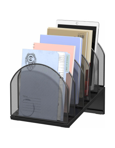 - Ahorra Espacio en el Escritorio: El organizador de papel para escritorio adopta un diseño vertical para maximizar la eficiencia del espacio. Sus compartimentos en ángulo permiten una fácil visualización y acceso rápido a los archivos almacenados.