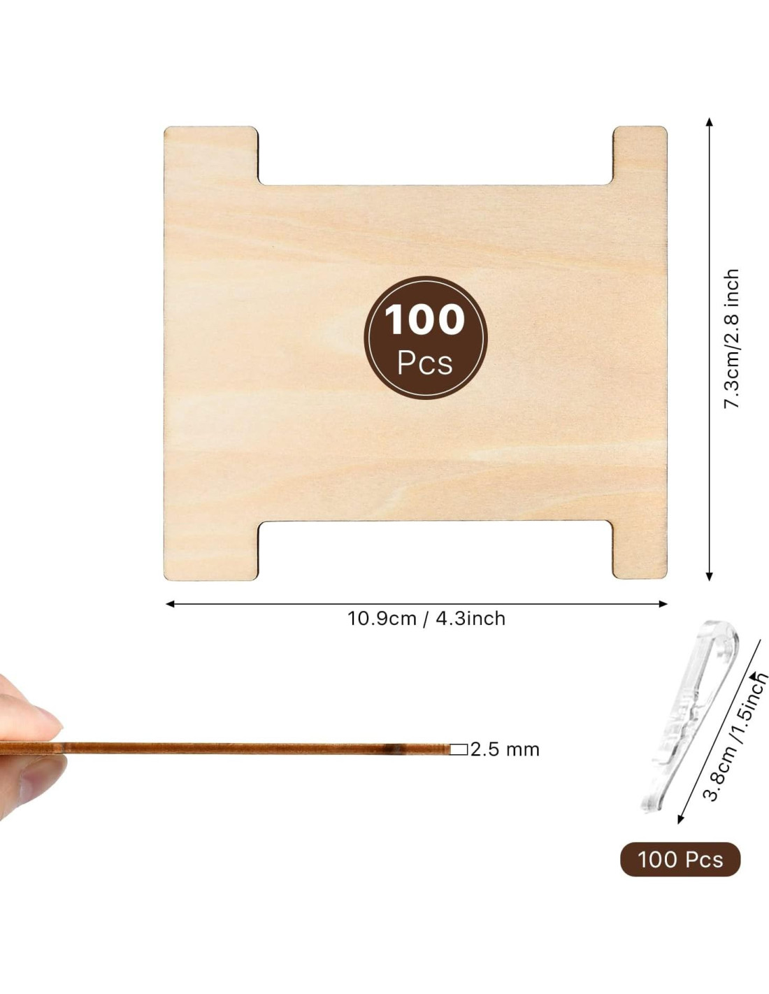 Especificaciones: Tamaño: 2.8*4.3 pulgadas (7.3*10.9 cm) Color: color madera Materiales: madera, plástico Paquete contiene: 100* bobinas de cinta de madera 100* clips plegables en forma de U Características: 2.5 mm de grosor: Material de madera natural, no fácil de romper, puede durar mucho tiempo Materiales de primera calidad: Superficie suave y sin astillas, no rayará tu cinta
