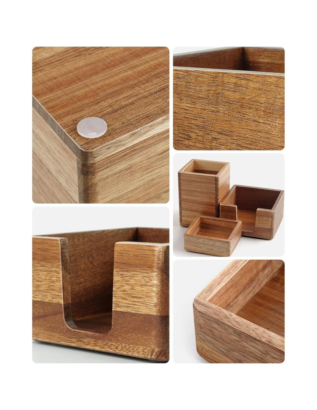 - Hecho de Material de Madera de Acacia Natural: Este organizador de escritorio tiene una apariencia elegante y estilizada, muestra patrones de grano de madera únicos.