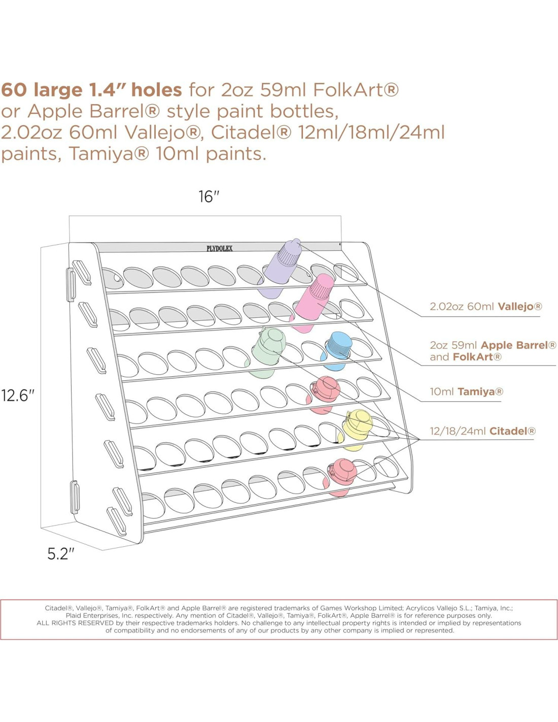 - Rack de pintura de pared - ¡Experimente la máxima organización de pintura con el rack de pintura Citadel! Diseñado para la estabilidad en la mesa y la conveniencia montada en la pared, el soporte de pintura acrílica cuenta con 2 agujeros en la parte posterior para una fácil instalación en la pared. Eleve su espacio de trabajo mientras mantiene las pinturas al alcance con un organizador de almacenamiento de pintura para pasatiempos. ¡Desate su creatividad hoy!