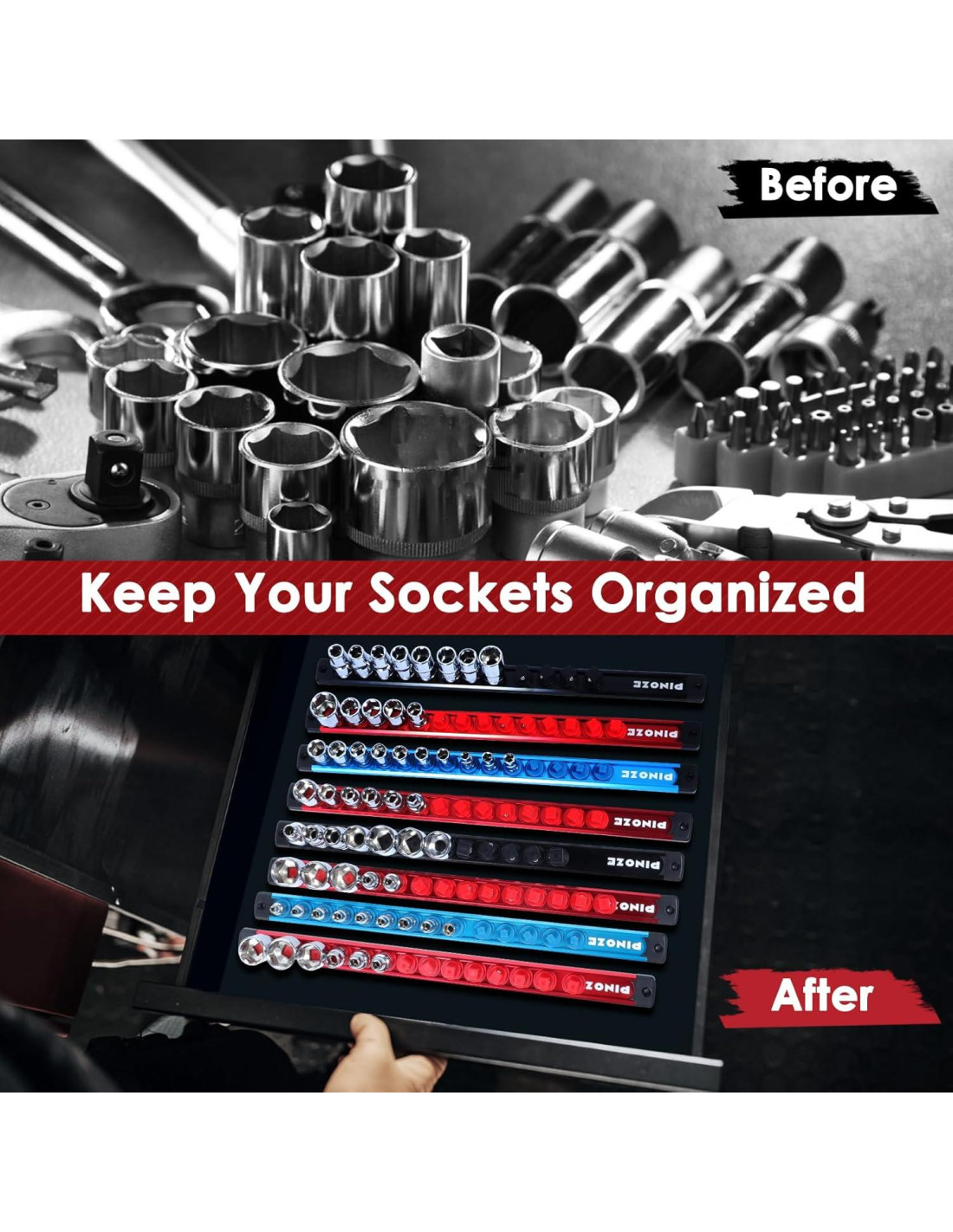 - [Diseño Innovador de Codificación por Colores] - Diferente de los soportes de enchufes ordinarios, este diseño innovador puede ayudar a los usuarios a distinguir más fácilmente entre tamaños Métricos y SAE o personalizar sus propias necesidades más libremente.