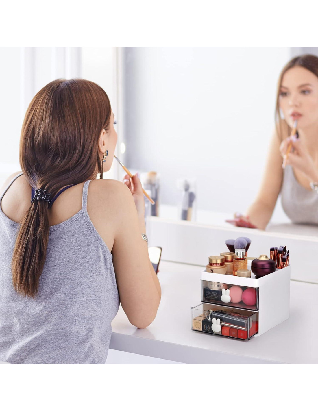 - TAMAÑO PERFECTO - 5.1*5.9*4.5 pulgadas (13*15*11.5 cm), se adapta fácilmente al escritorio. Dos pequeños cajones de suministro con muescas son fáciles de sacar. Colócalo sin que ocupe demasiado espacio.