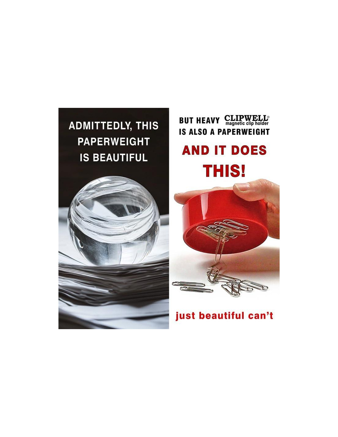 - Convierte el Caos en Calma - El soporte magnético para clips de papel Clipwell trae orden a escritorios, taquillas o cajones desordenados. Es un ayudante importante en la oficina o la escuela. Con una altura de 3.02 cm (1 3/16") y un diámetro de 8.89 cm (3 1/2"), Clipwell es lo suficientemente pequeño para caber donde lo necesites y lo suficientemente grande para sostener los clips que usas. No se cae como lo hacen las cajas de plástico ligeras porque es lo suficientemente pesado para ser el peso perfecto para papel.