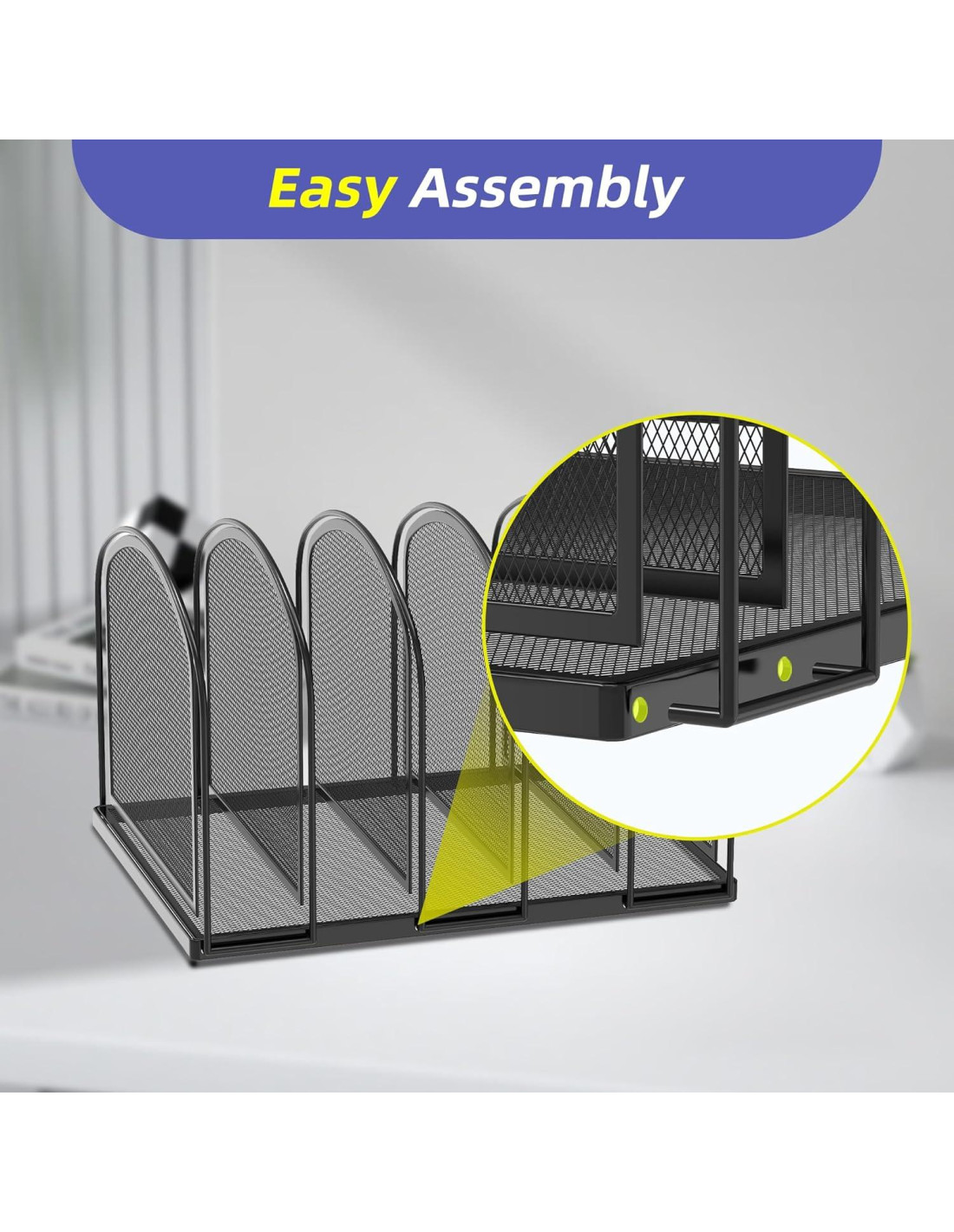 - [Diseño Moderno y Limpio] El diseño de malla metálica negra de nuestro soporte para organizador de archivos añade un toque de sofisticación a tu espacio de trabajo, mientras que el diseño de malla de acero promueve el flujo de aire para ayudar a reducir la acumulación de polvo.