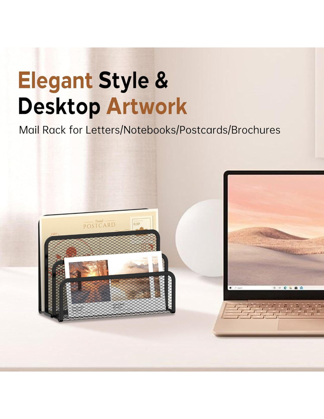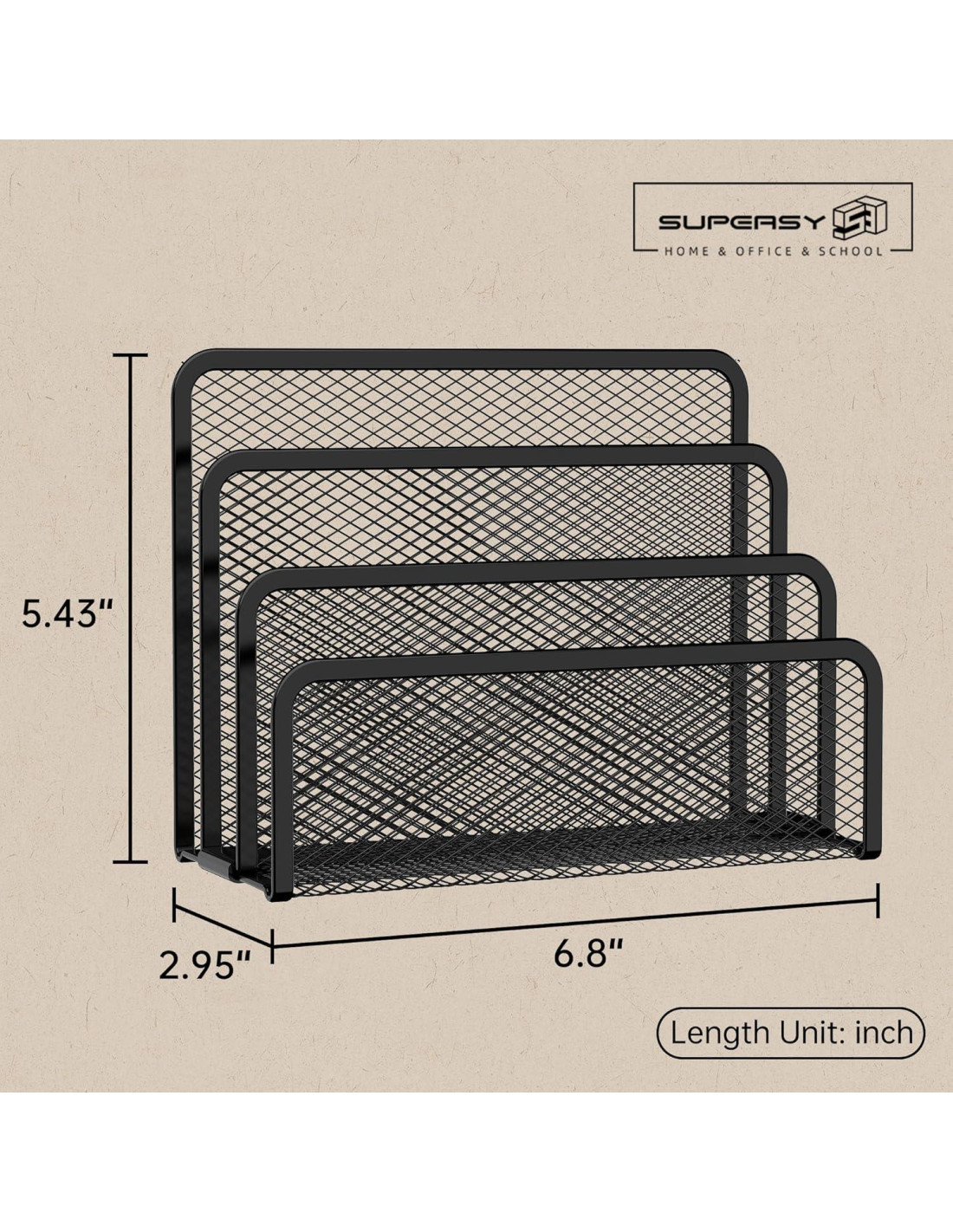 - [Mantén tu Escritorio Limpio] El soporte de correo de escritorio no está hecho de plástico o madera, el material de metal enrejado no solo es fuerte y duradero, sino que también puede minimizar la acumulación de polvo y asegurar la pulcritud del escritorio.