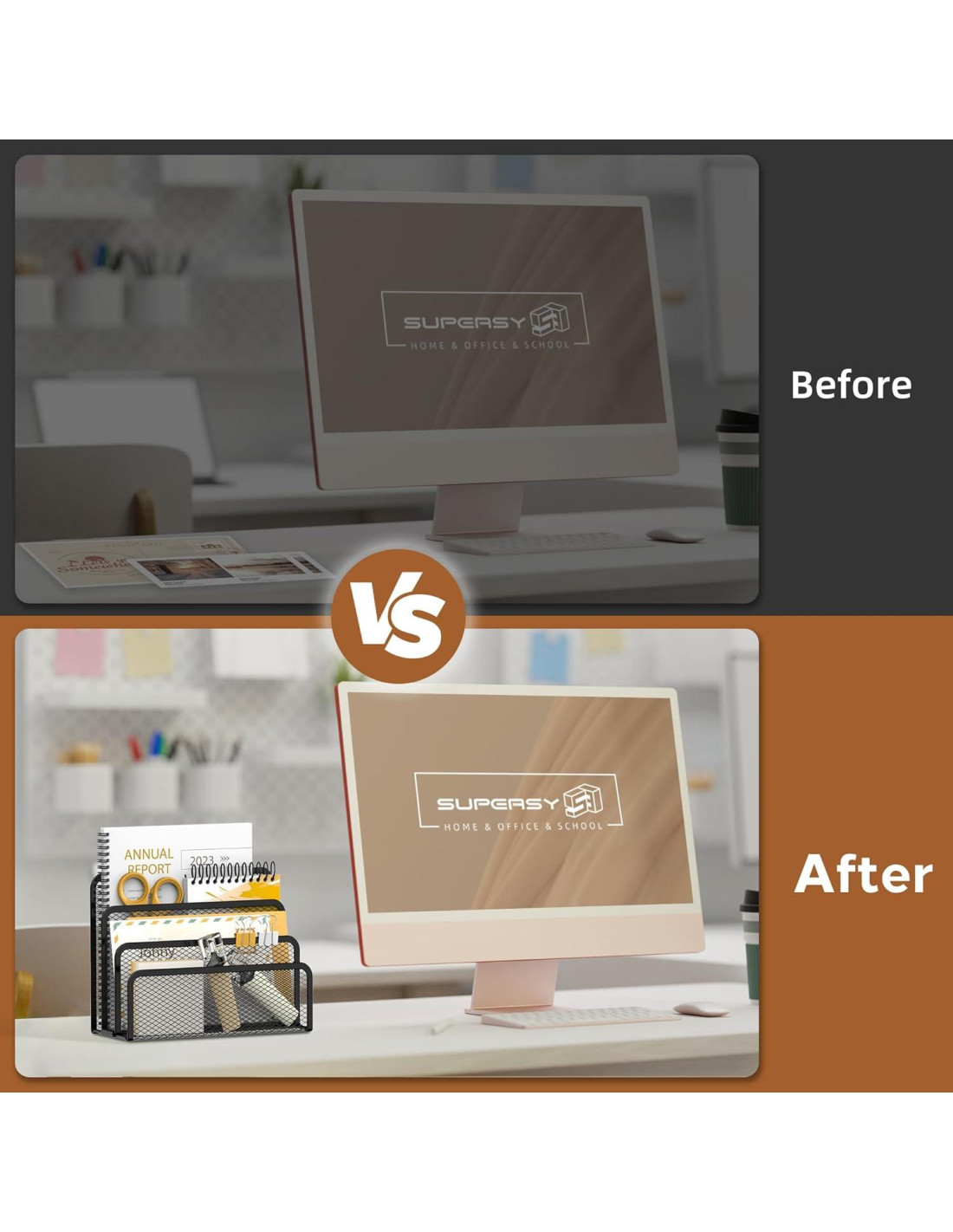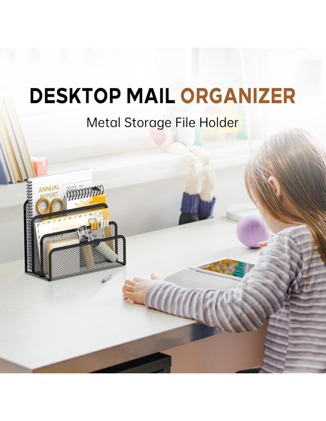 - [Ahorro de Espacio] Nuestro organizador de correo cuenta con 3 compartimentos, diseñados para consolidar tus artículos de escritorio. Este soporte de correo controla el desorden del escritorio, ahorra espacio valioso y mantiene un espacio de trabajo limpio y ordenado.
