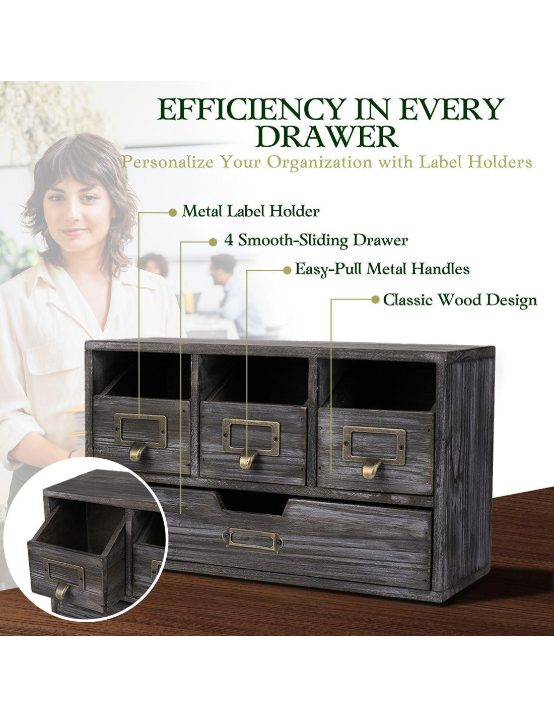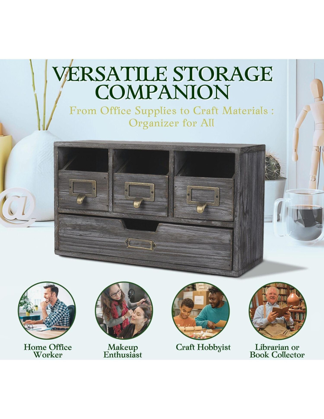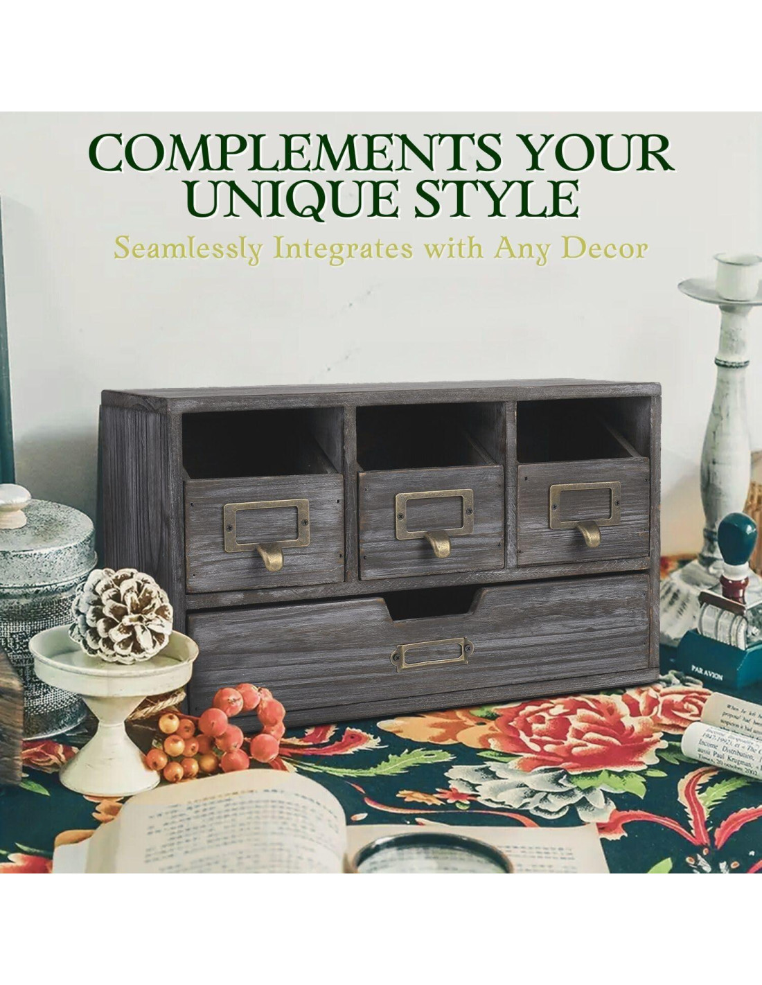 - Estética Vintage - Este compacto organizador de escritorio de madera con cajones ayuda en la organización y añade un toque de encanto rústico a cualquier espacio, sirviendo como un artículo práctico y una pieza decorativa