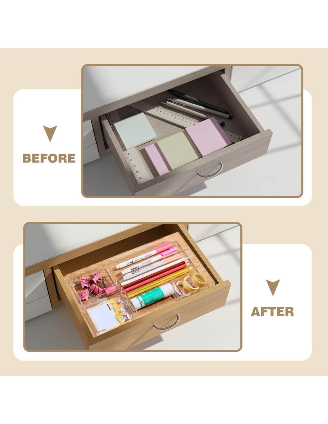 - Facilidad de Limpieza: el mantenimiento es muy sencillo con nuestro organizador de cajón de oficina; Simplemente límpialo suavemente con un paño húmedo para restaurarlo a su estado prístino; El acrílico evita los problemas de descomposición que pueden afectar a la madera o el bambú, asegurando que tu organizador de almacenamiento se mantenga fresco