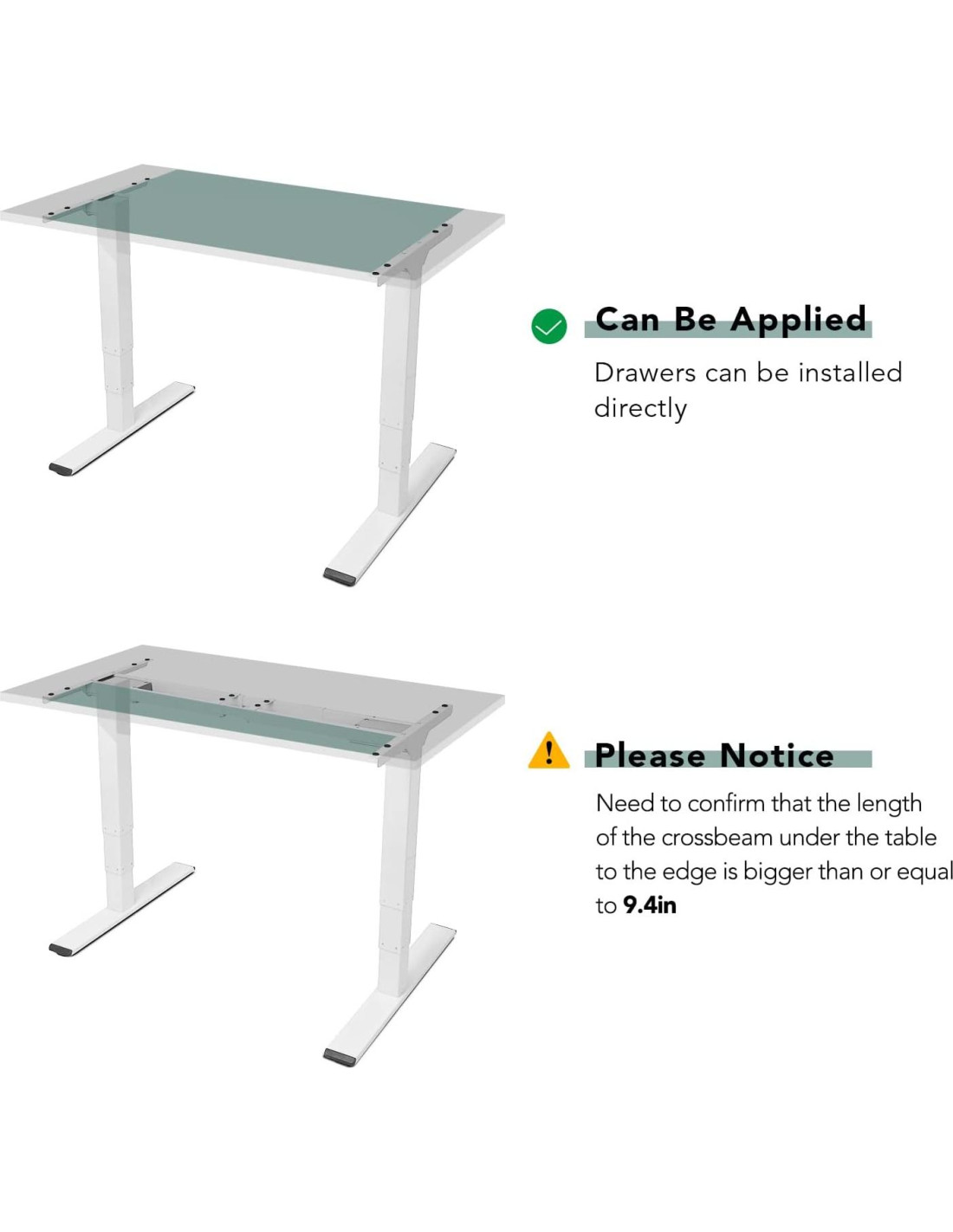 - Cajón Elegante y Delgado le da un aspecto simple y minimalista. Este conveniente cajón de almacenamiento se monta debajo de tu escritorio, sube y baja con él a medida que ajustas las alturas de sentado a de pie, manteniendo tus cosas al alcance. El perfil delgado de tres pulgadas del cajón asegura que no ocupará tu valioso espacio para las piernas, dejando mucho espacio para mover tus rodillas.