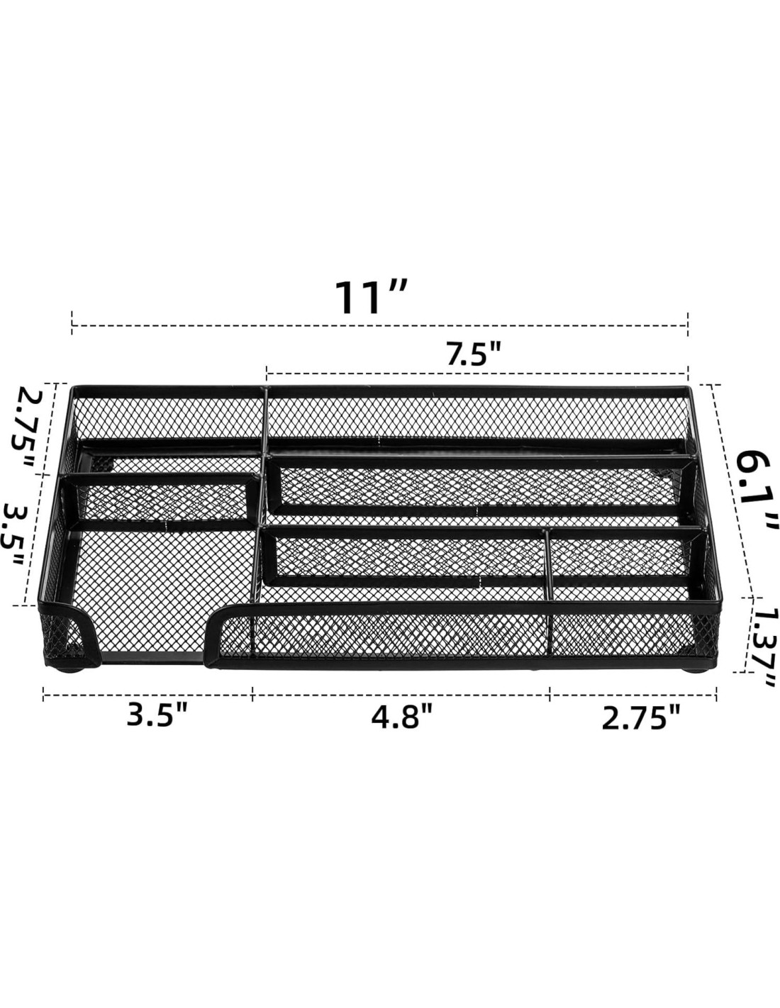 - Ahorro de Espacio: Con 6 divisores, la bandeja de almacenamiento de 6 compartimentos puede clasificar tus herramientas de oficina según tu hábito, lo que hará que tus cajones de escritorio o mesa sean más ordenados y bien organizados. Te ofrecerá un entorno de escritorio ordenado y ahorrará más espacio de almacenamiento.