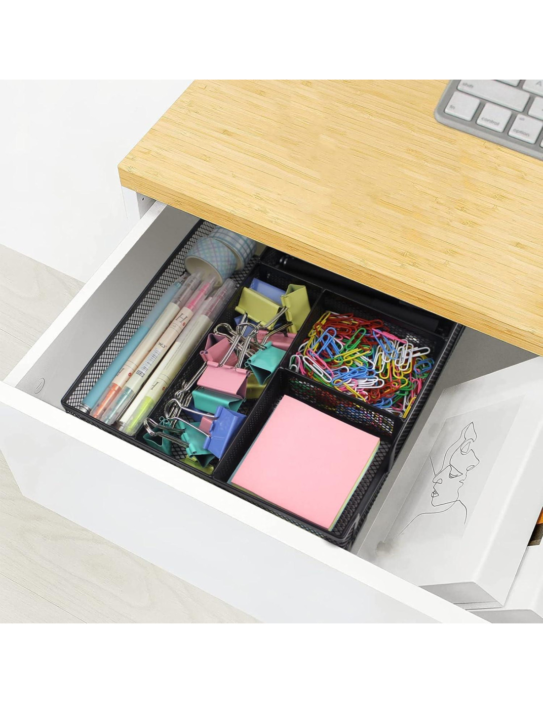 - Uso Multifuncional: Nuestros accesorios organizadores son excelentes para almacenar una amplia gama de artículos, incluyendo bolígrafos, lápices, notas adhesivas, clips, tarjetas de marca, carpetas, sacapuntas, reglas, grapadoras, tijeras, cinta, joyas, cubiertos y utensilios en casa. Adecuado para cajón de oficina, escritorio escolar, cajón de cocina, cajón de baño, cajón de teclado, escritorio de computadora, mesa de comedor, etc.