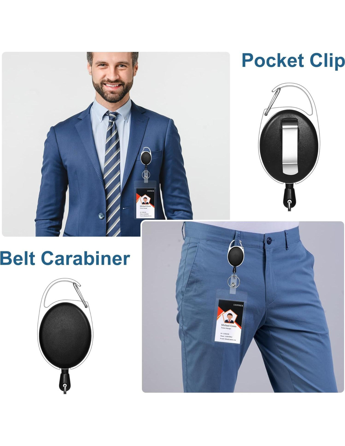- [Alta Resistencia] -El cordón de fibra es compacto y resistente, con una fuerza de retracción de hasta 3.5oz (100g) mientras que lo ordinario solo puede soportar 2.1oz. Y los clips de identificación retráctiles están diseñados con un cordón retráctil que puede extenderse hasta 24 pulgadas (60cm) de largo.